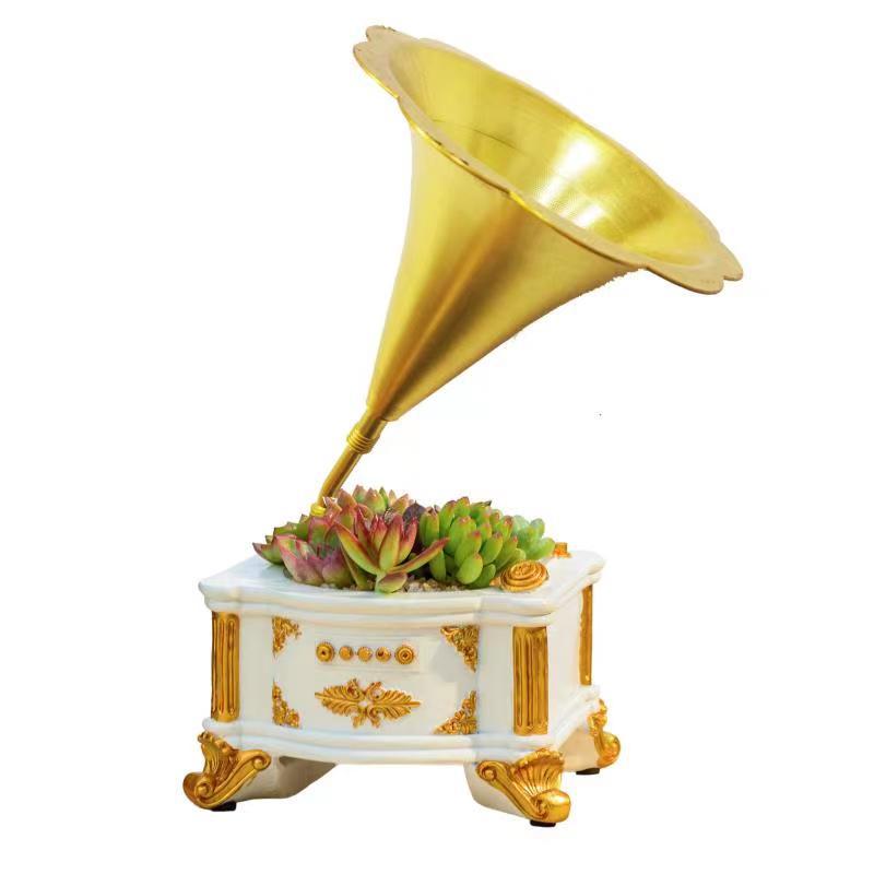 안뜰 테라스 장식품 시뮬레이션 축음기 다육 질 화분 우유 차 가게 달콤한 가게 장식 정원 수지 공예