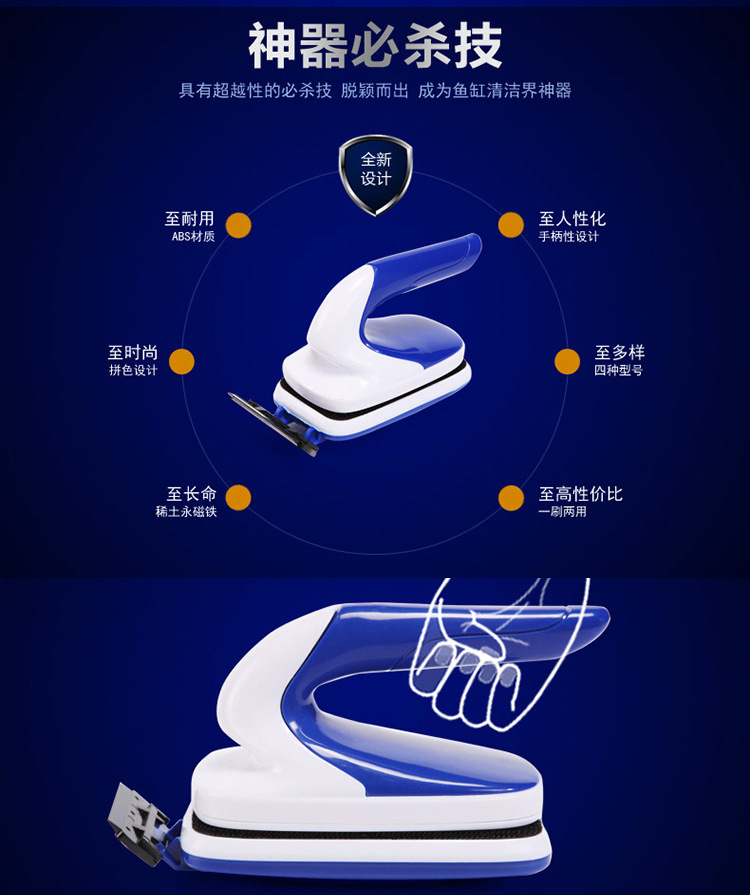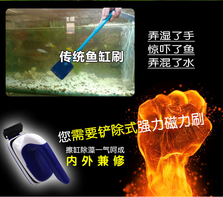 2、本产品采用好材料支撑,超强磁力,内外刷件吸合力好,清洁鱼缸,一步到位!