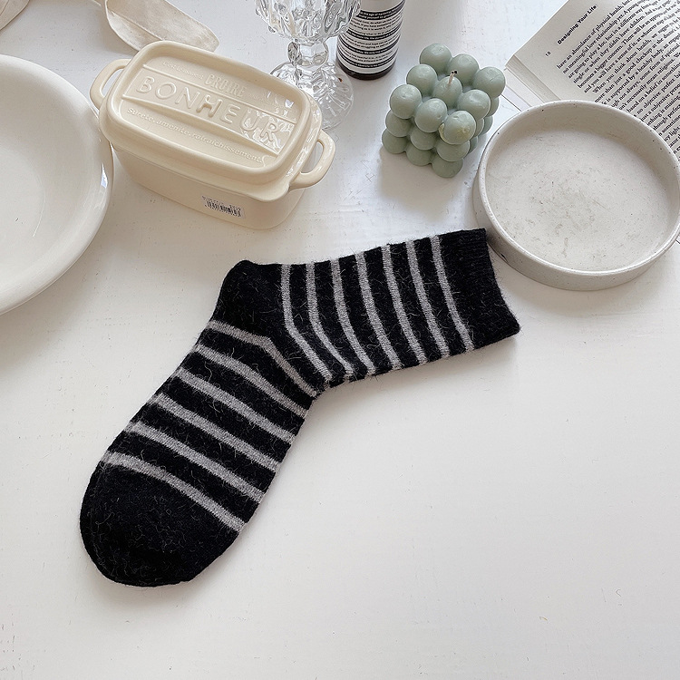 두꺼운 토끼 울 양말 트렌디 한 가을과 겨울 여성용 한국식 일본식 스트라이프 플러시 따뜻한 보관을 위한 중간 말뚝 양말스토어 가기