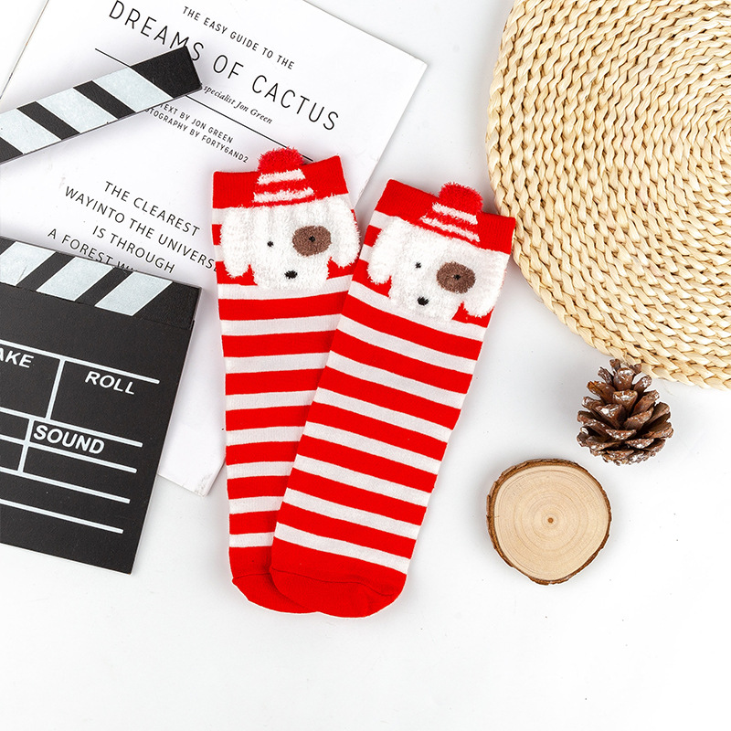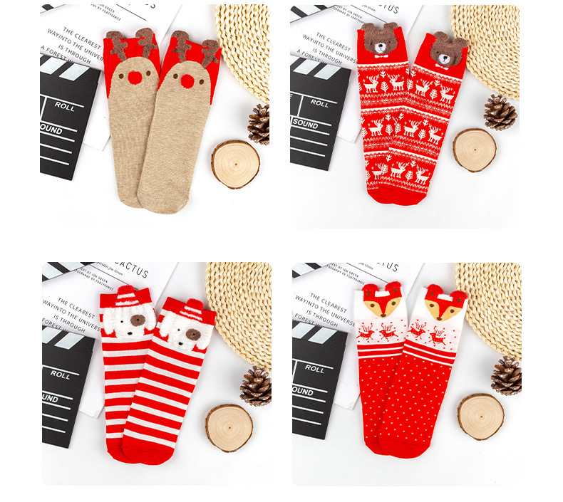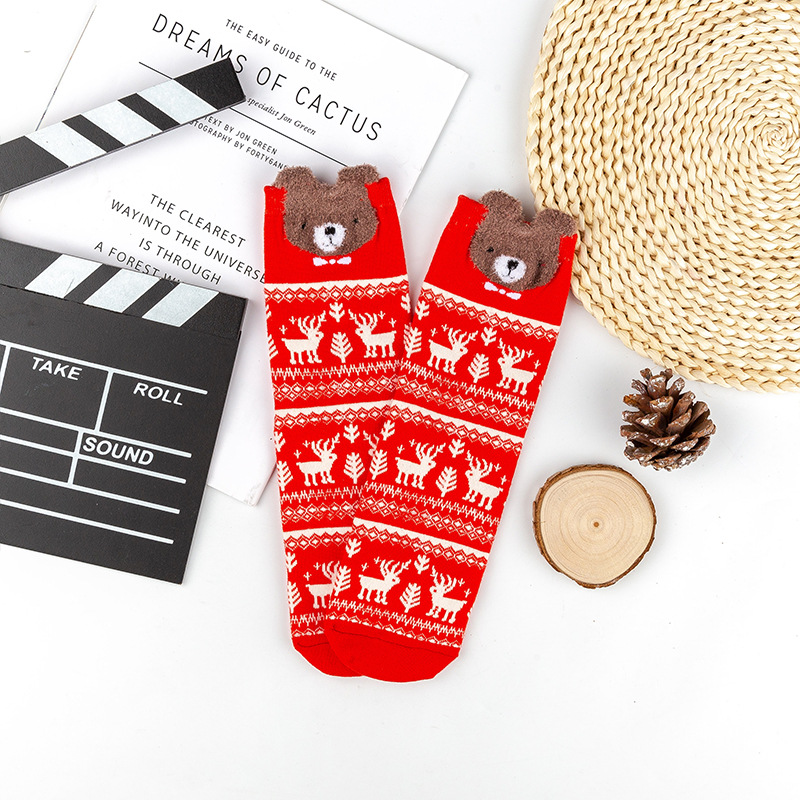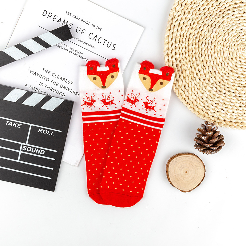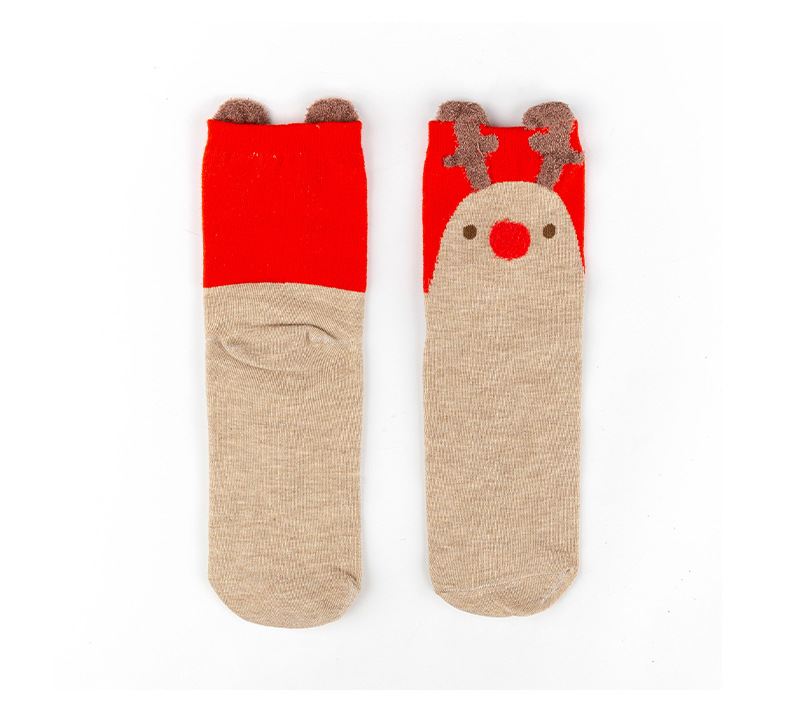 가을과 겨울 색면 양말 입체 만화 크리스마스 면 양말 조수 양말 귀여운 일본 엘크 숙녀 튜브 양말 도매스토어 가기