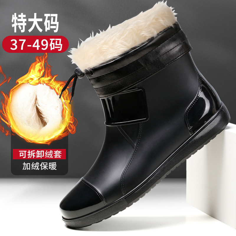 39-49 플러스 사이즈 가을과 겨울 면 따뜻한 비 부츠 남자의 짧은 튜브 낮은 탑 레인 부츠 주방 노동 방수 고무 신발