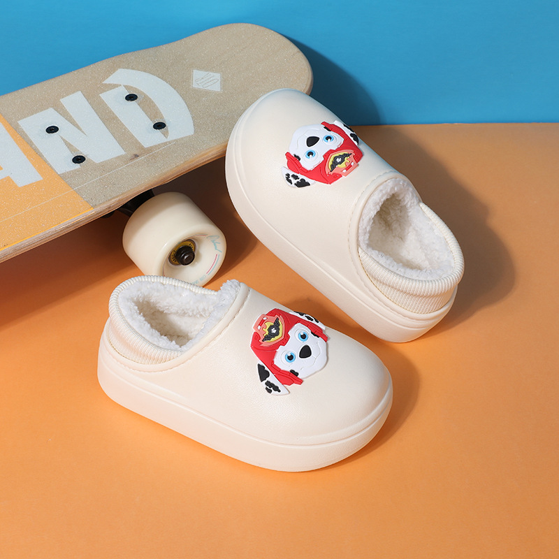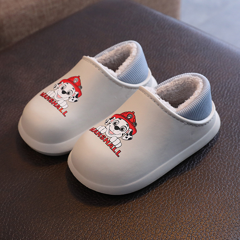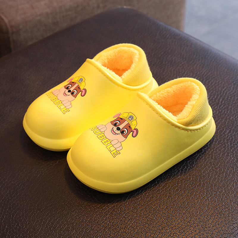 Wang Wang team 소년과 소녀를위한 어린이 면화 신발 아기 집 미끄럼 방지 방수 면 슬리퍼 기모 가을과 겨울을위한 따뜻한 면화 신발