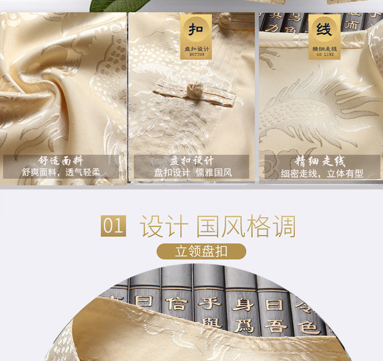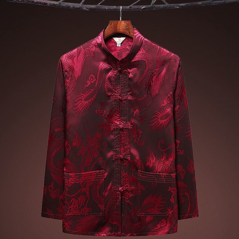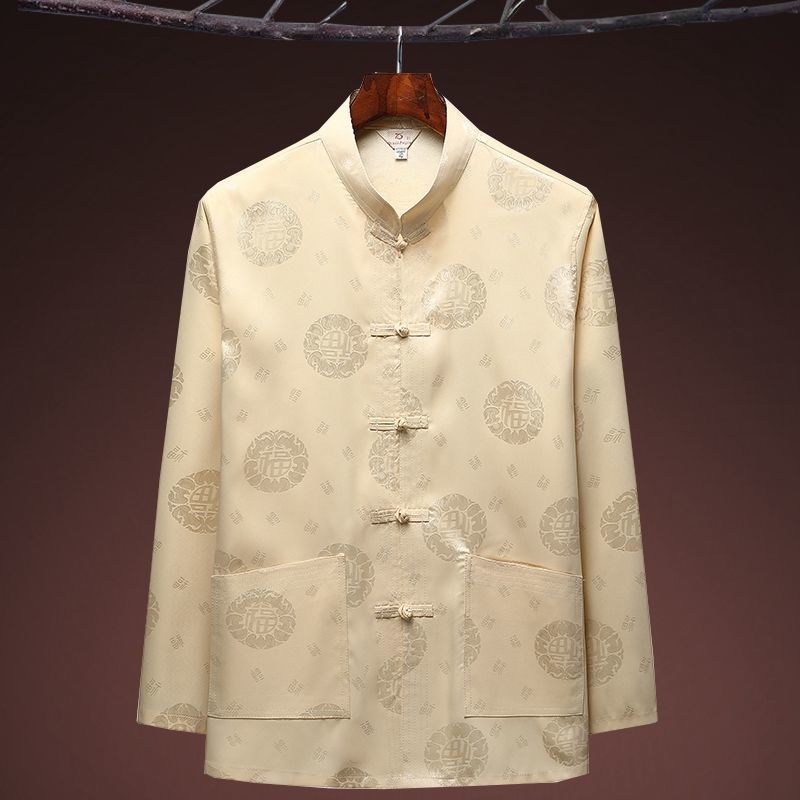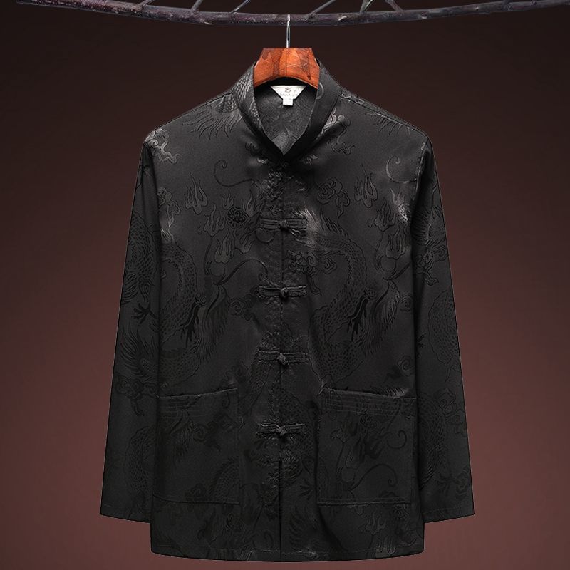 중국 봄과 여름 아이스 실크 중년 및 노인 당나라 세트 남자의 긴팔 가을 세트 아빠의 실크 할아버지의 Hanfu스토어 가기