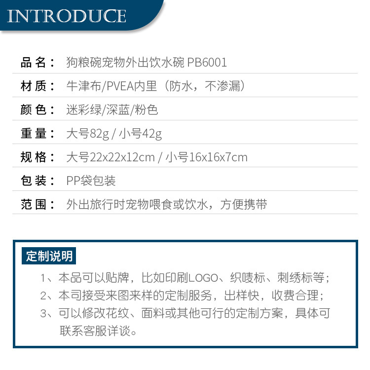 크로스 보더 옥스포드 천 야외 개 사료 그릇 휴대용 접이식 그릇 애완 동물 마시는 그릇 대용량 여행 개 그릇스토어 가기