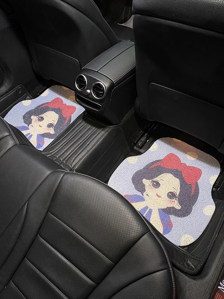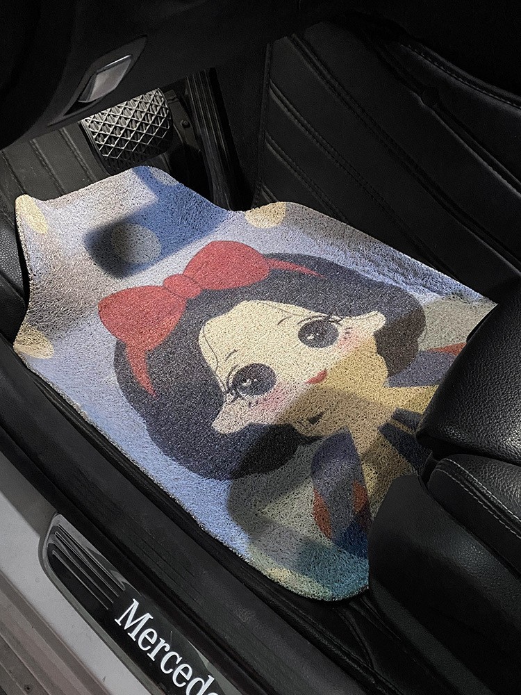 만화 귀여운 자동차 매트 싱글 카 실크 링 발 매트 유니버설 청소하기 쉬운 먼지 방지 프리 커팅 매트스토어 가기