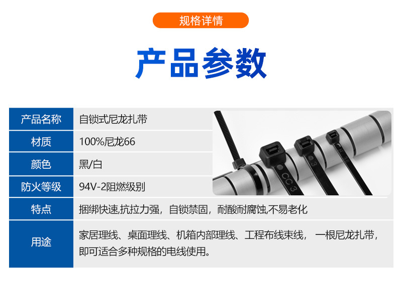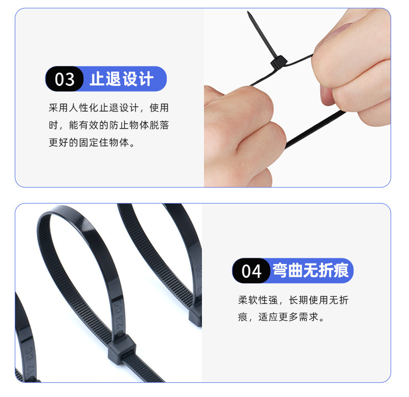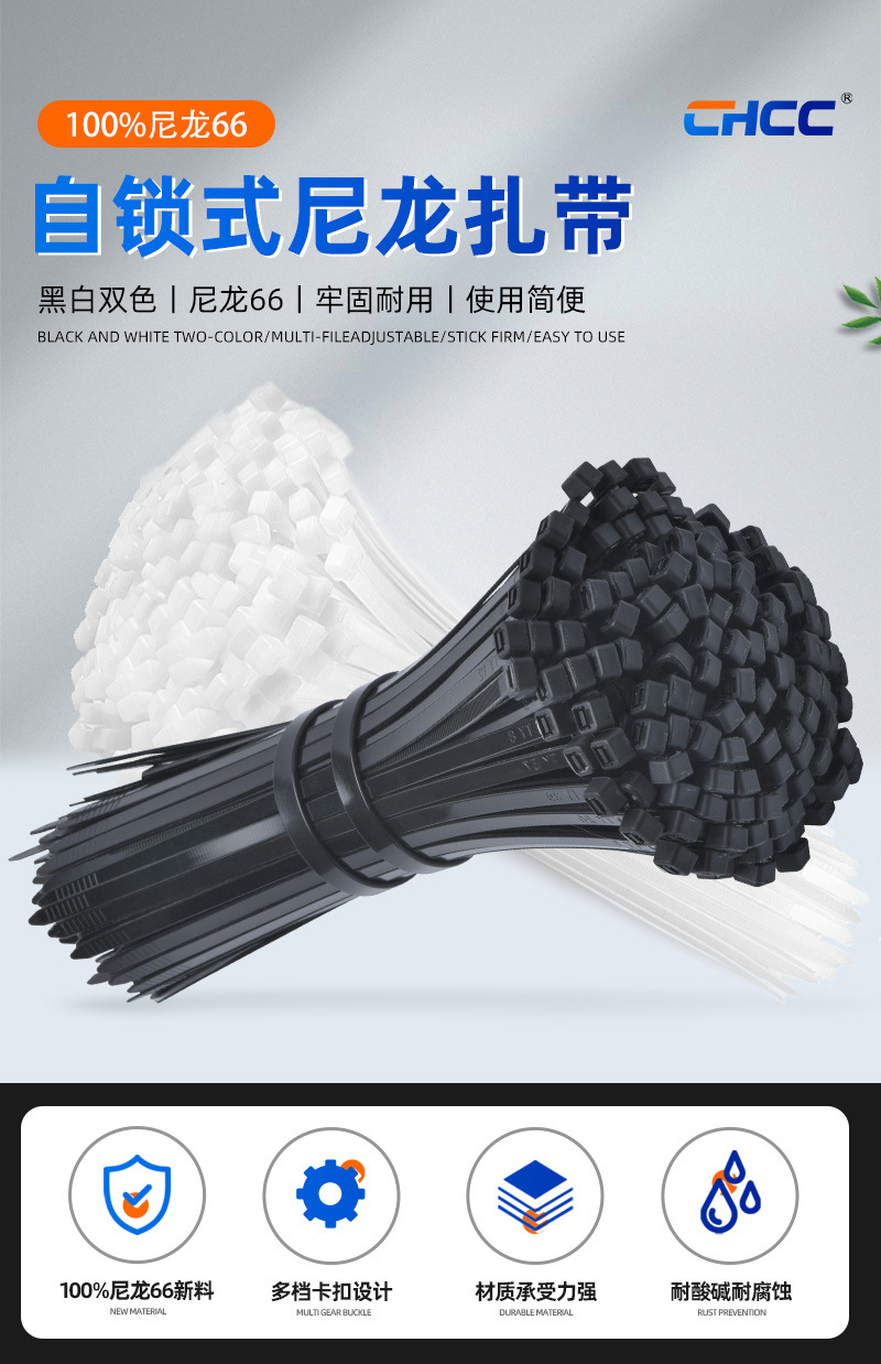 제조업체의 나일론 케이블 타이 바인딩 스트랩 자동 잠금 플라스틱 두꺼운 흑백 포장 케이블 타이 스팟 도매