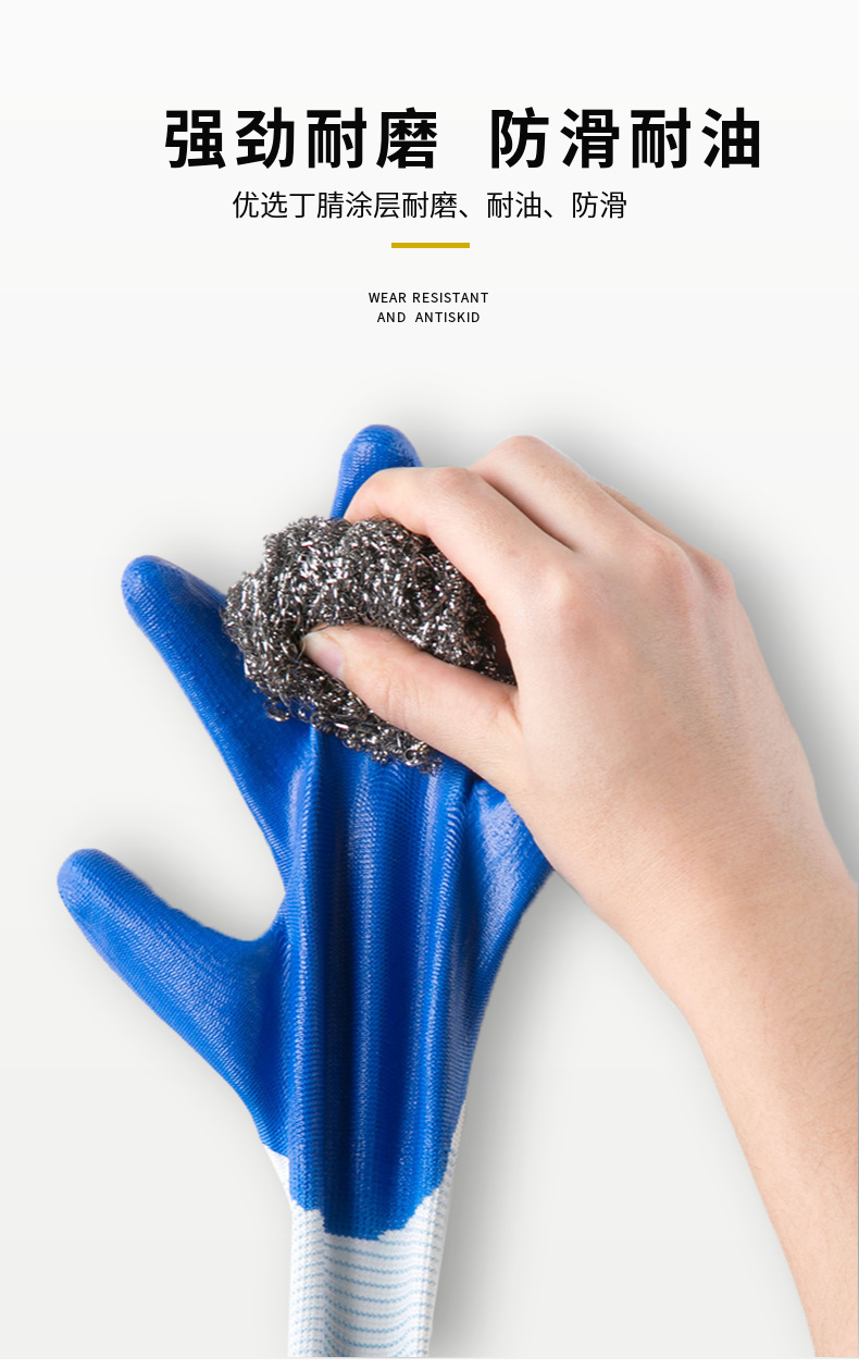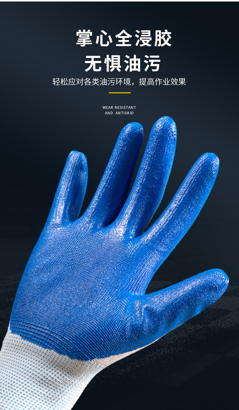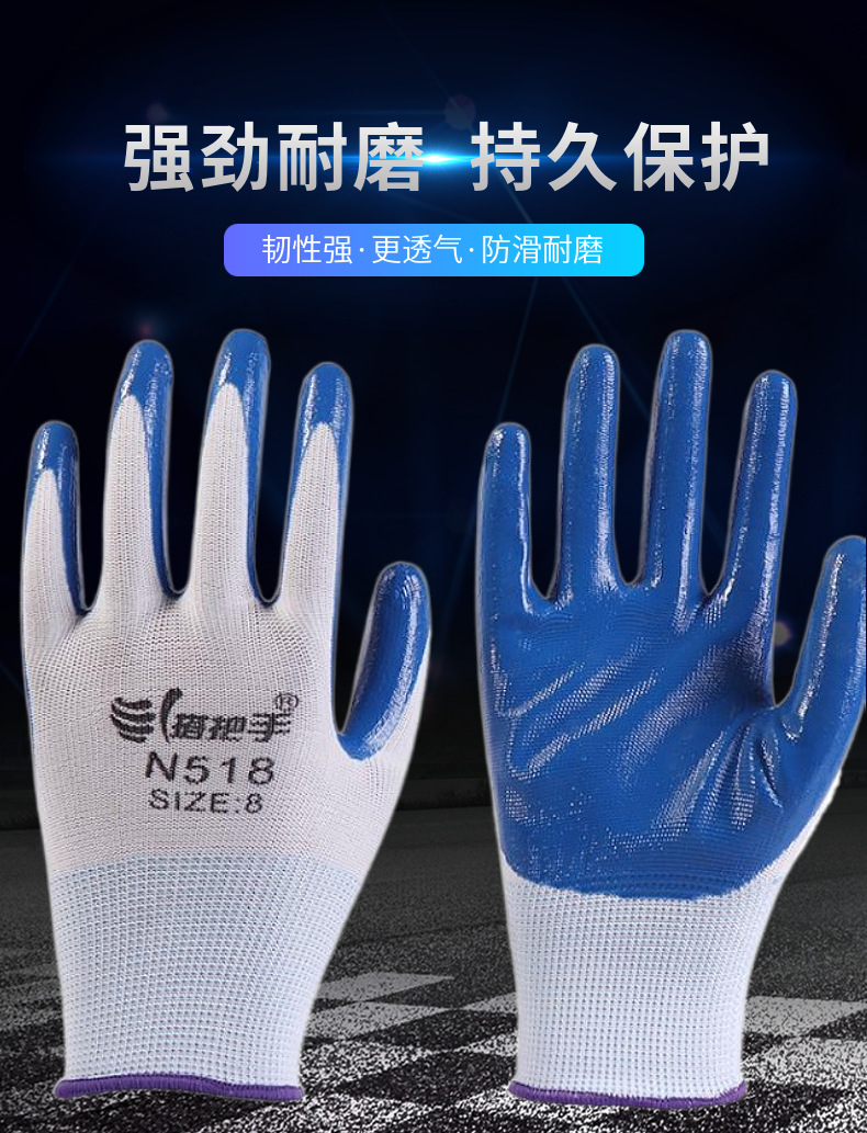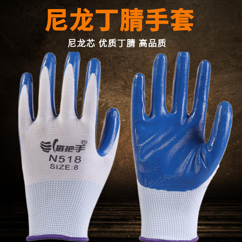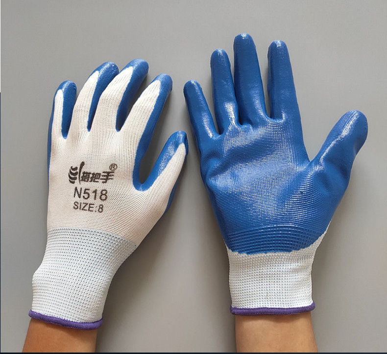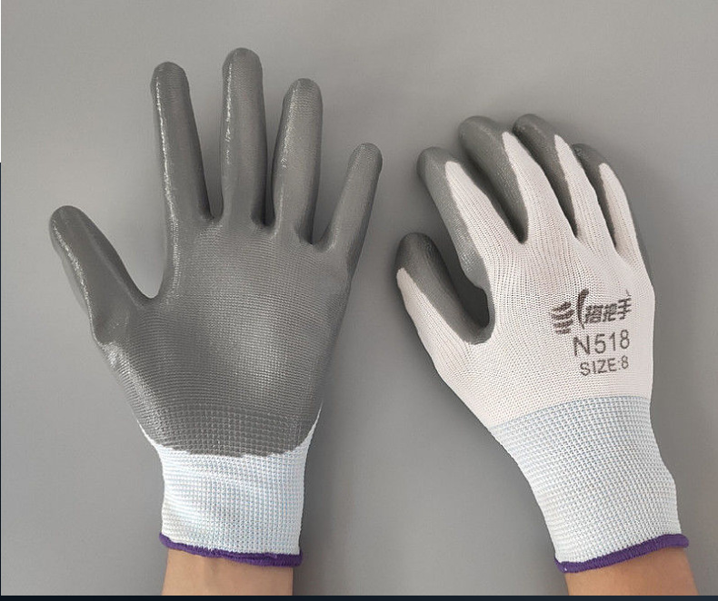 손잡이 N518 나일론 니트릴 장갑 접착제 담근 내마모성 미끄럼 방지 노동 보호 장갑 통기성 및 편안한 접착제 걸이 장갑스토어 가기