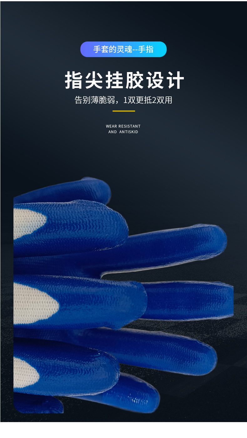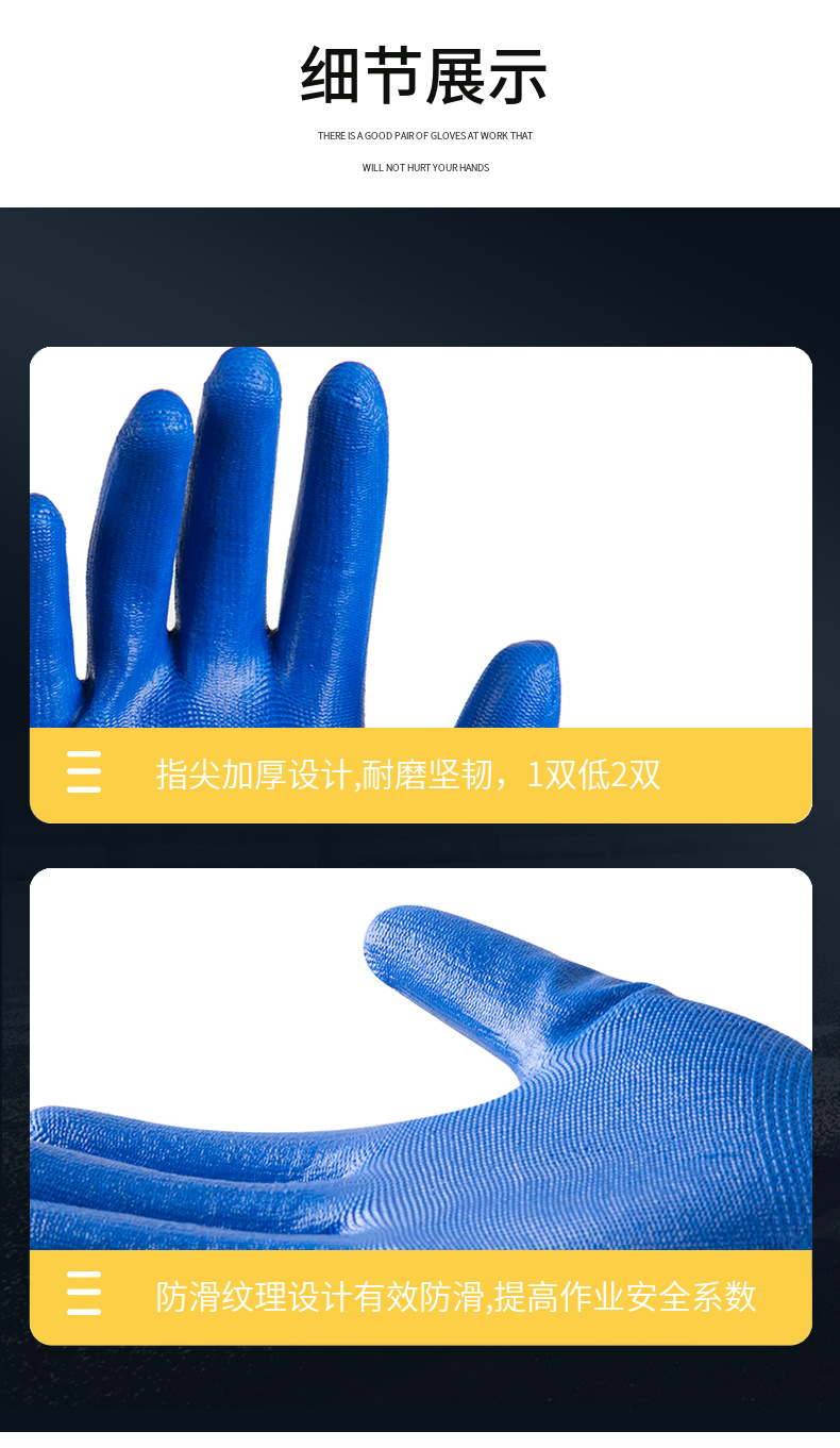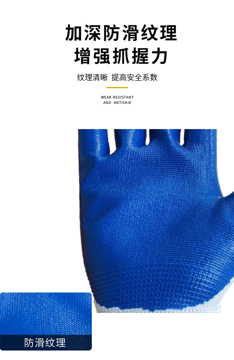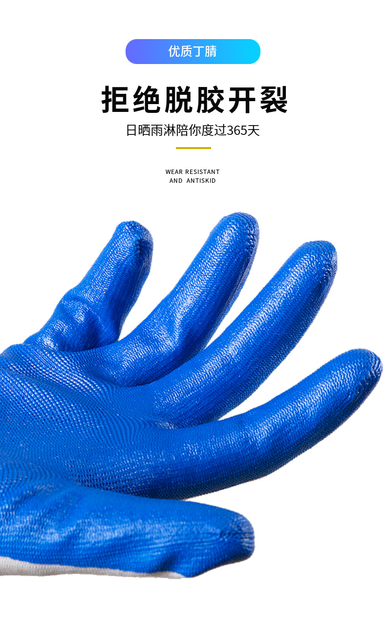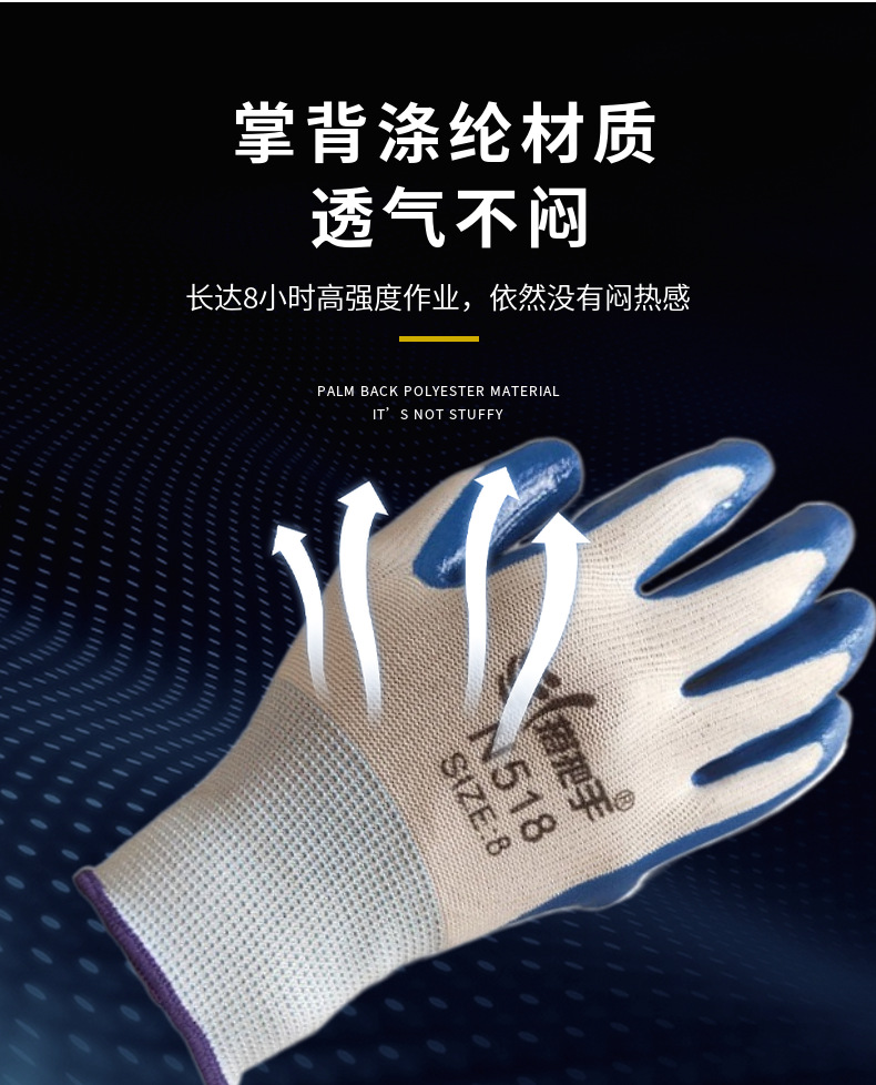 손잡이 N518 나일론 니트릴 장갑 접착제 담근 내마모성 미끄럼 방지 노동 보호 장갑 통기성 및 편안한 접착제 걸이 장갑스토어 가기
