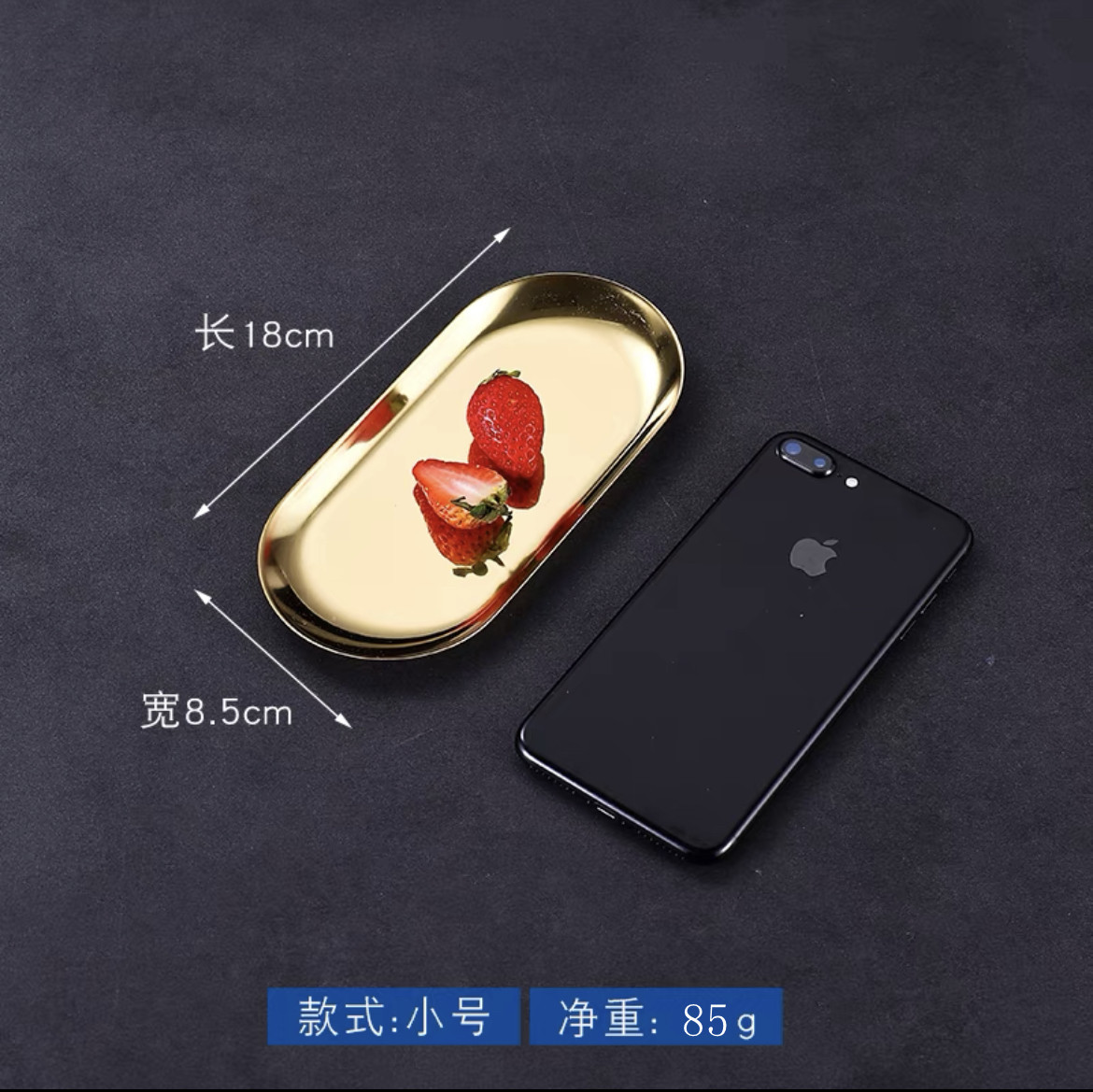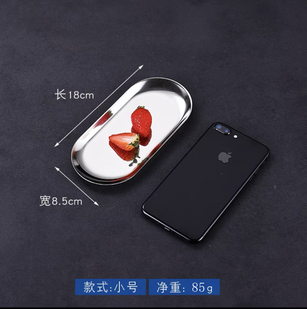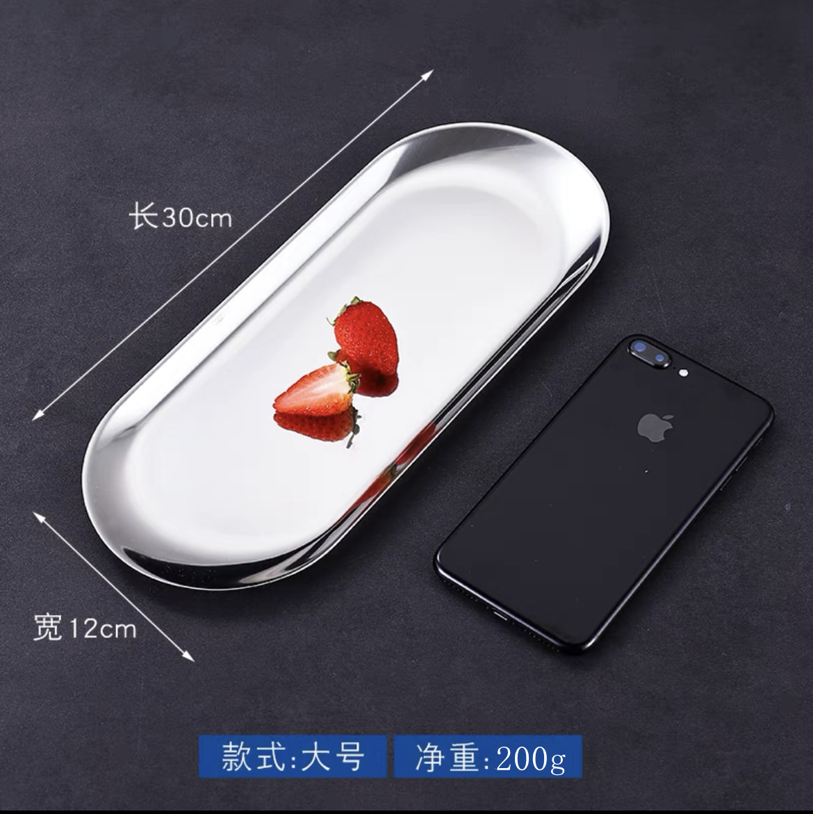 品名:韩式不锈钢椭圆盘 烤肉盘 餐厅甜品糕点盘 毛巾饰品多功能收纳盘