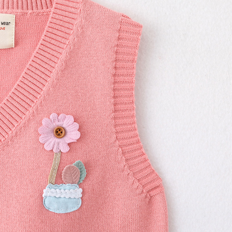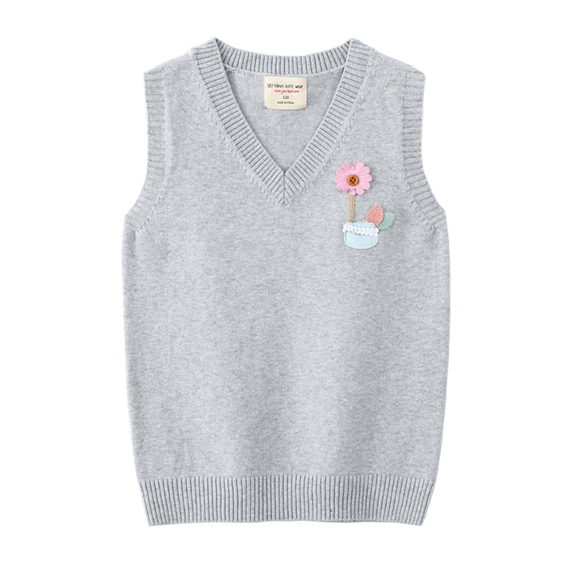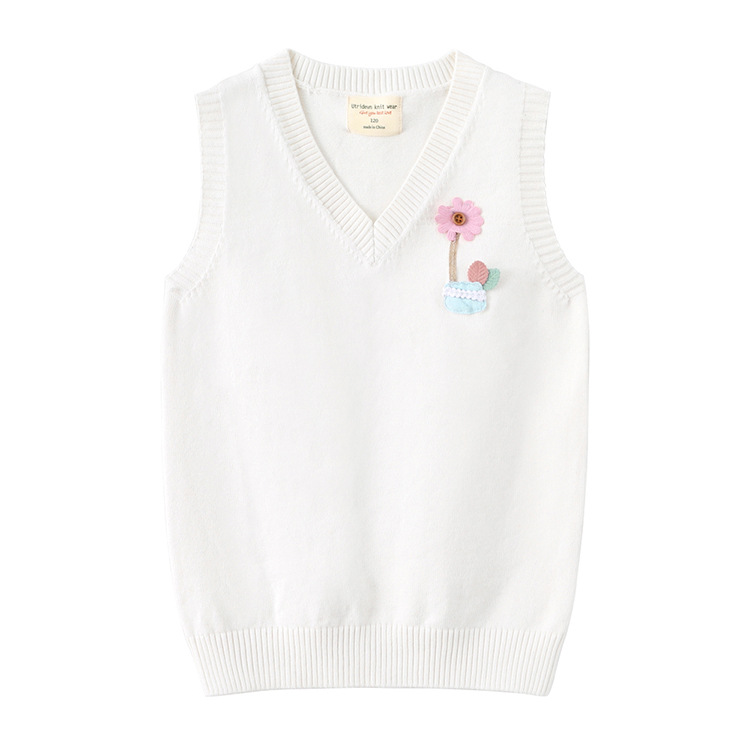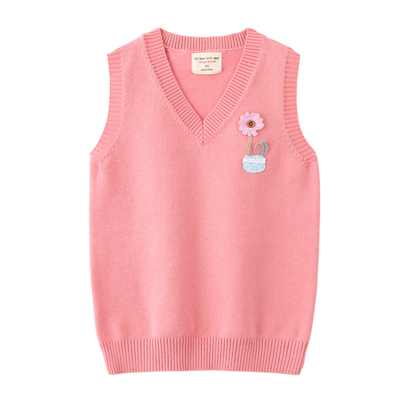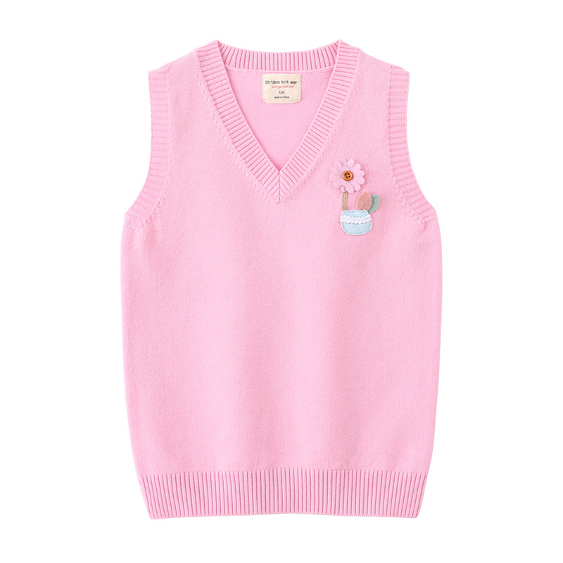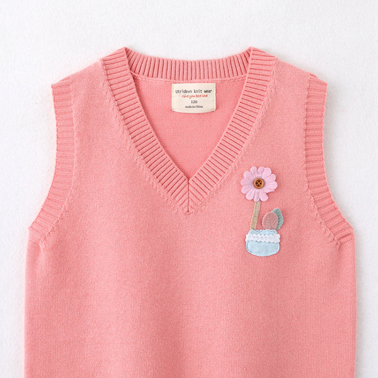 크기 선택 도매 봄과 가을 어린이 양모 조끼 스웨터 대학 어린이 학생 교복 꽃 소녀 니트 조끼스토어 가기