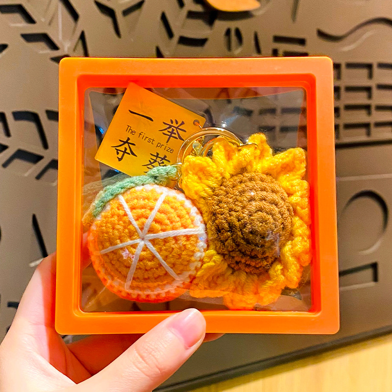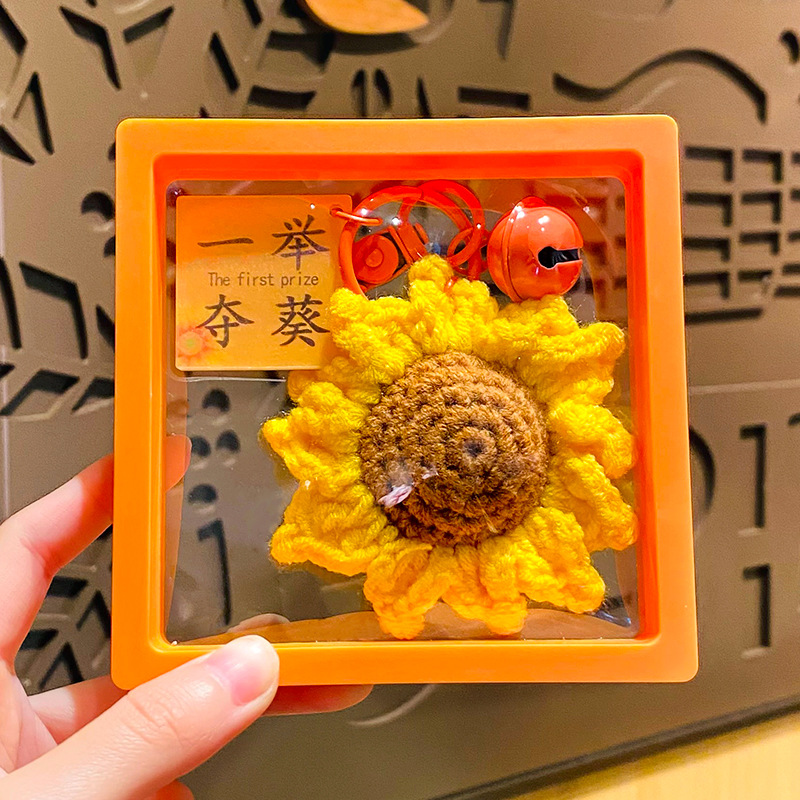 • 봉제 크로 셰 뜨개질 펜던트-해바라기 (한 번에 1 등상 수상) + 오렌지 서스펜션 박스