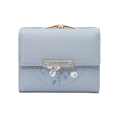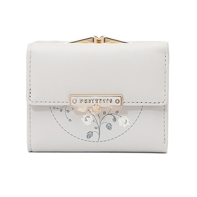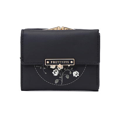 钱包女短款欧美复古PU磨砂五金叶子搭扣拉链折叠多功能学生零钱包