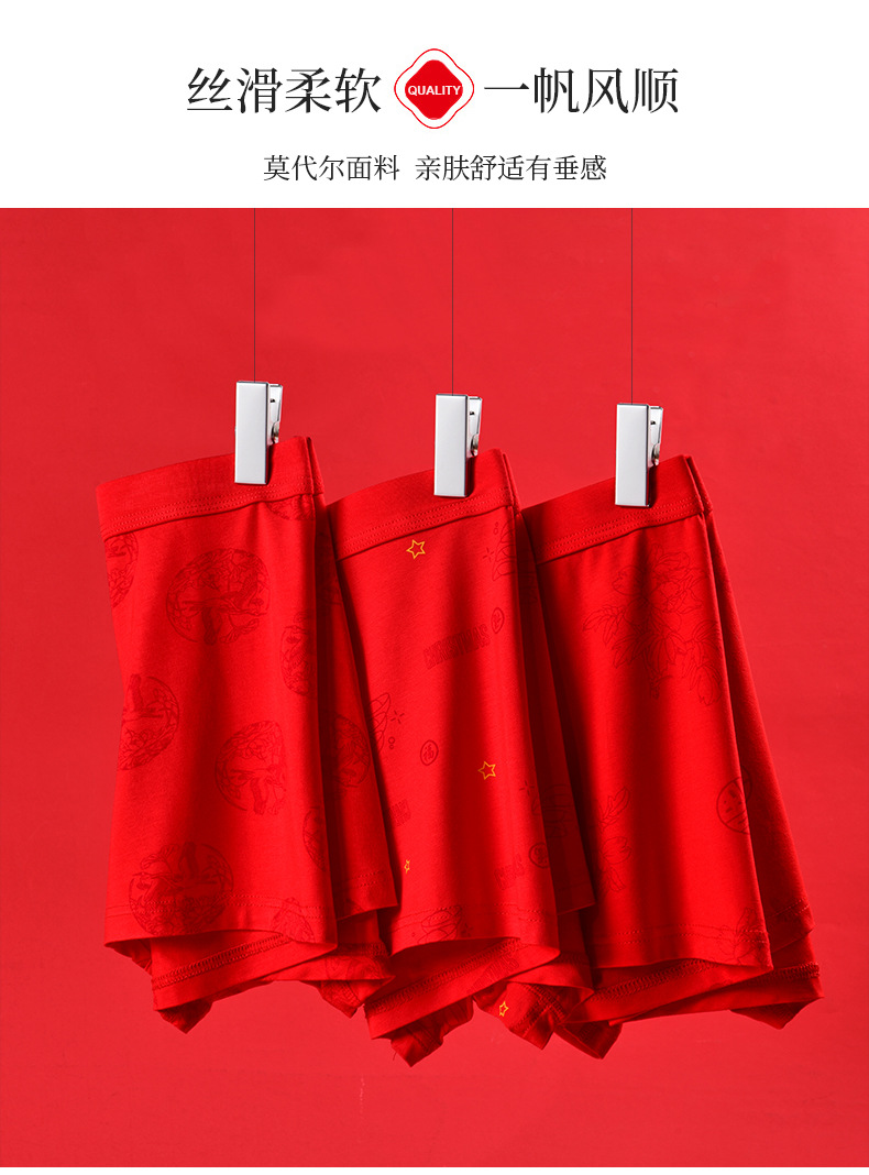 가을 겨울 모달 남성용 빨간색 속옷, 생년월일의 해에 입는 빨간색 사각팬티, 프린트된 사각팬티, 결혼식용 남성 속옷스토어 가기