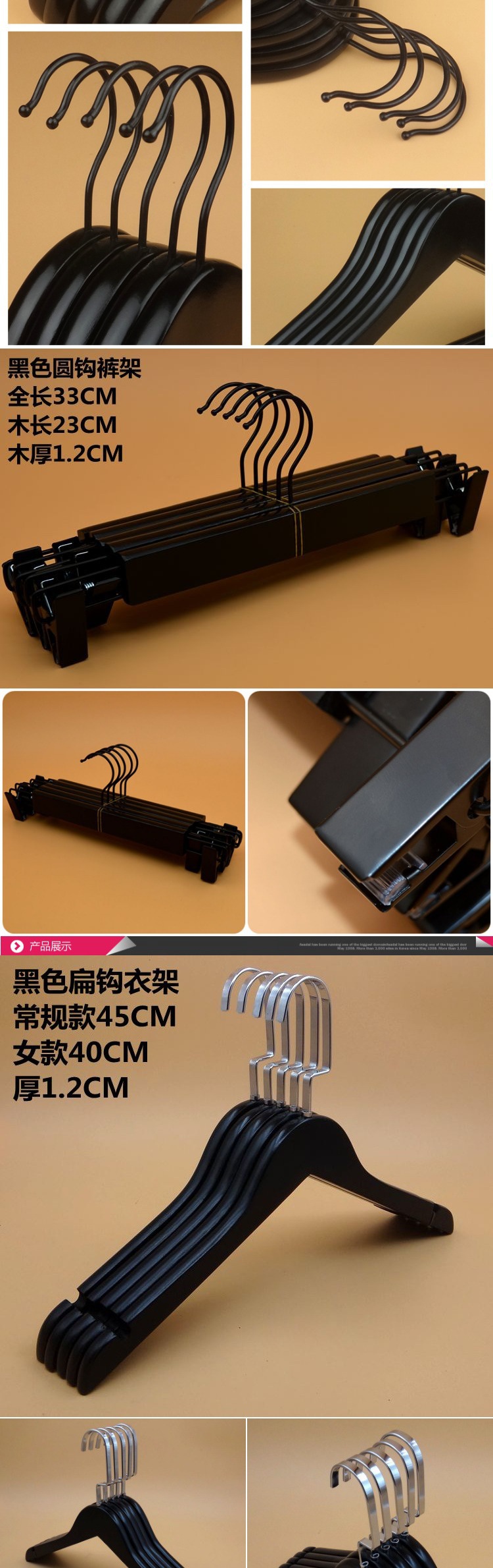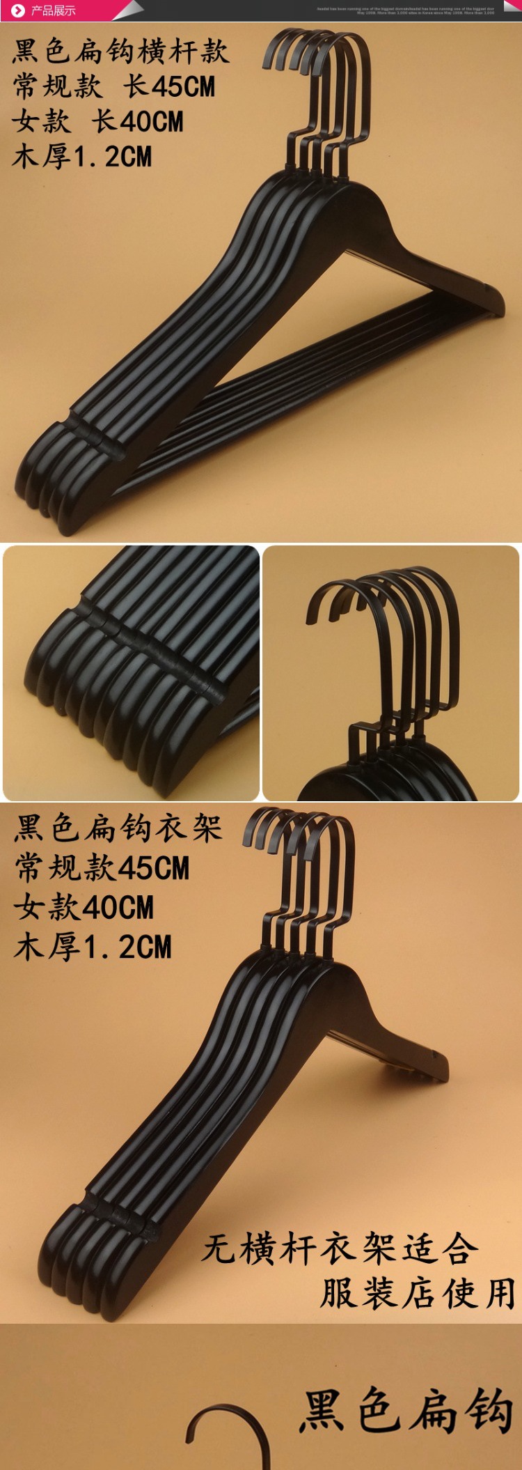 블랙 솔리드 우드 원활한 옷걸이 의류 매장 미끄럼 방지 옷걸이 호텔 나무 옷걸이 천연 통나무 재료 무료 배송스토어 가기