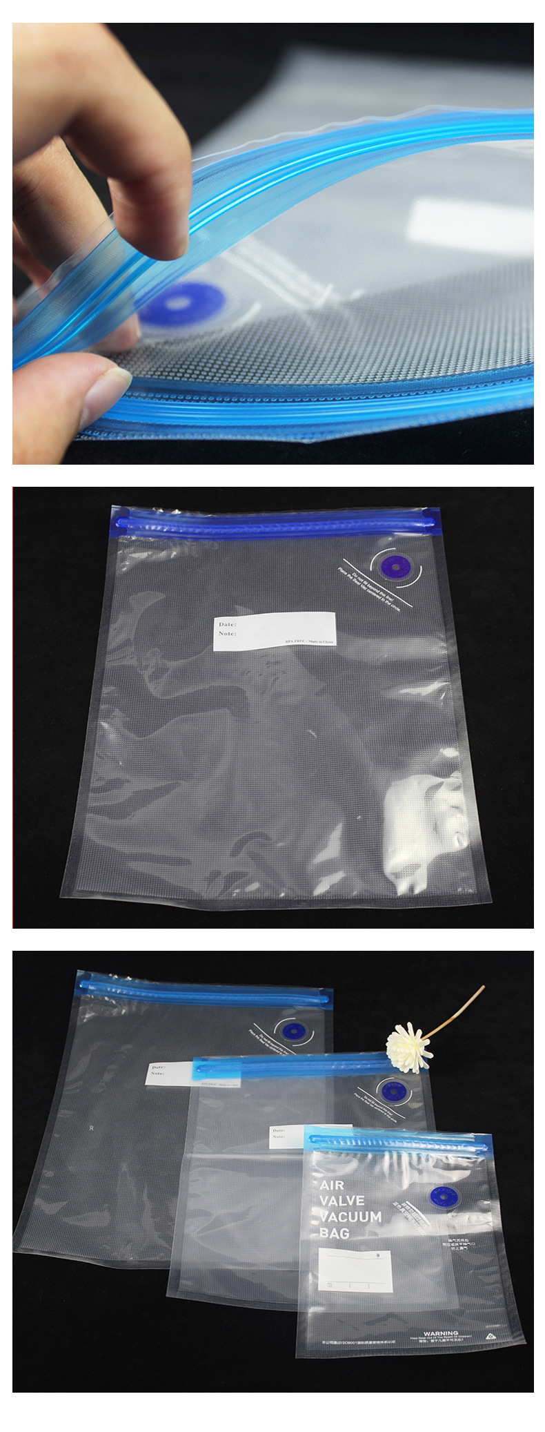Yue 플라스틱 가정용 진공 신선 유지 가방 투명 플라스틱 식품 등급 메쉬 지퍼 공기 밸브 복합 포장 가방