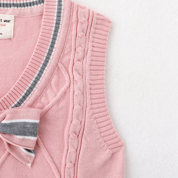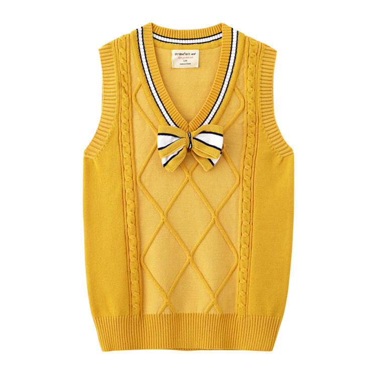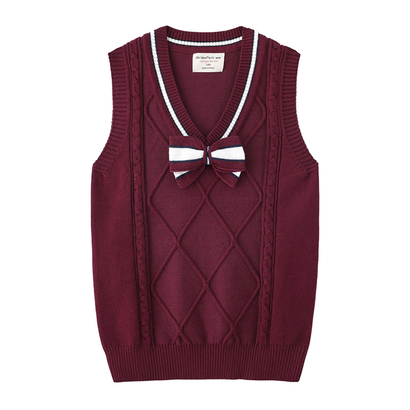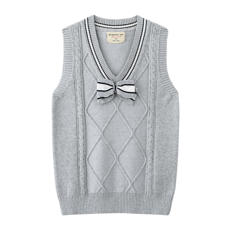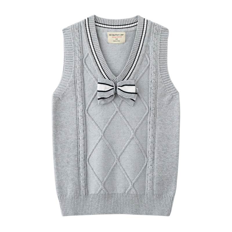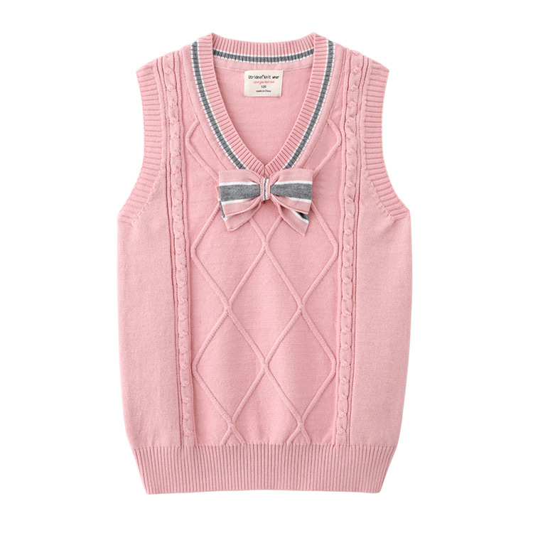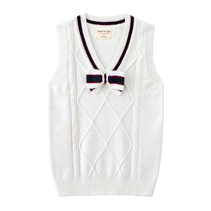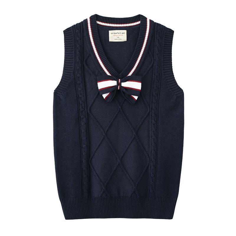 2021 봄과 가을 새로운 어린이 나비 넥타이 스웨터 조끼 중간 및 큰 어린이 울 탑 면 교복 여아 니트 조끼