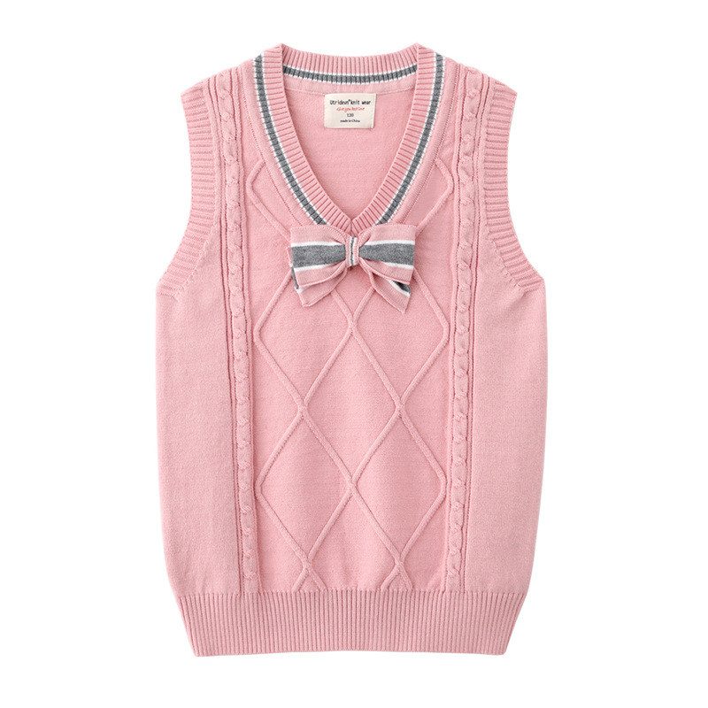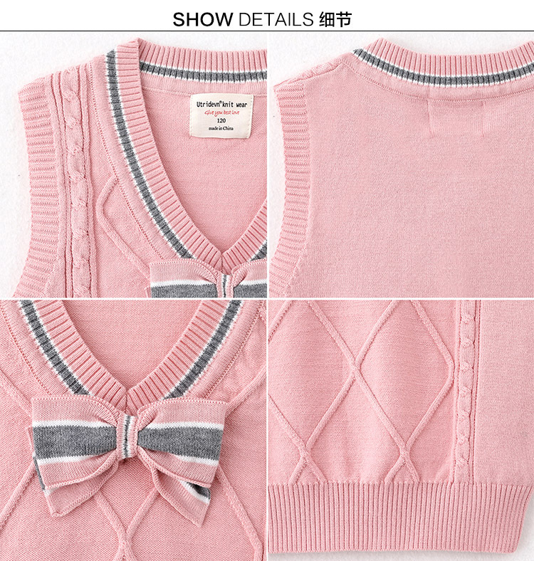 宝贝名称 :  V领蝴蝶结童装中大童毛衣背心无袖针织衫