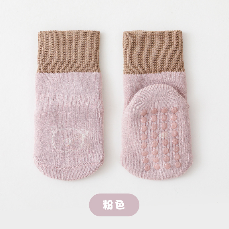 테리 두꺼운 아기 양말 가을과 겨울 새로운 실리콘 미끄럼 방지 색상 일치 어린이 양말 신생아 아기 양말
