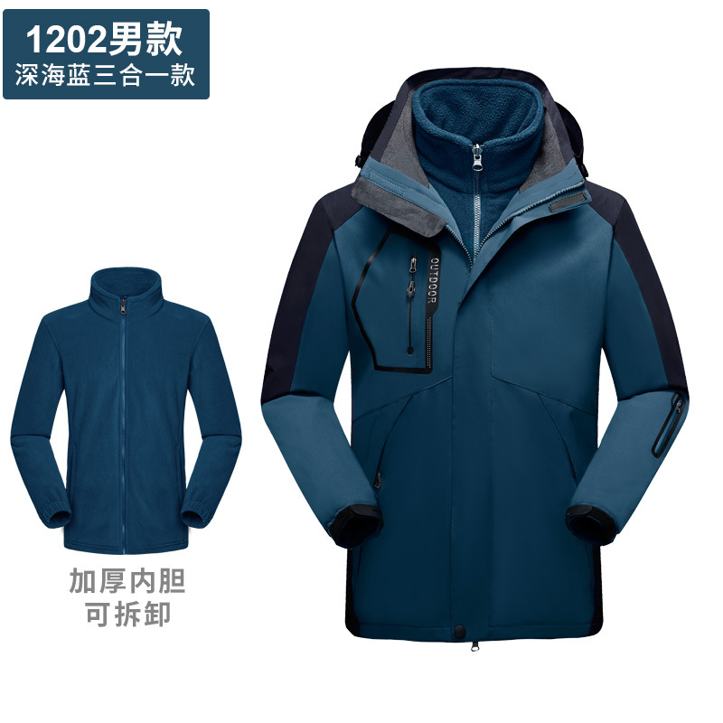 가을과 겨울 뉴 아웃도어 투피스 쓰리인원 돌격 의류 남성 방풍 따뜻한 등산복 오버롤 여성 로고