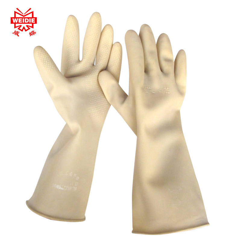 Weidie 40cm/45cm 길어진 두꺼운 산 및 알칼리 내성 화학 라텍스 노동 보호 보호 장갑