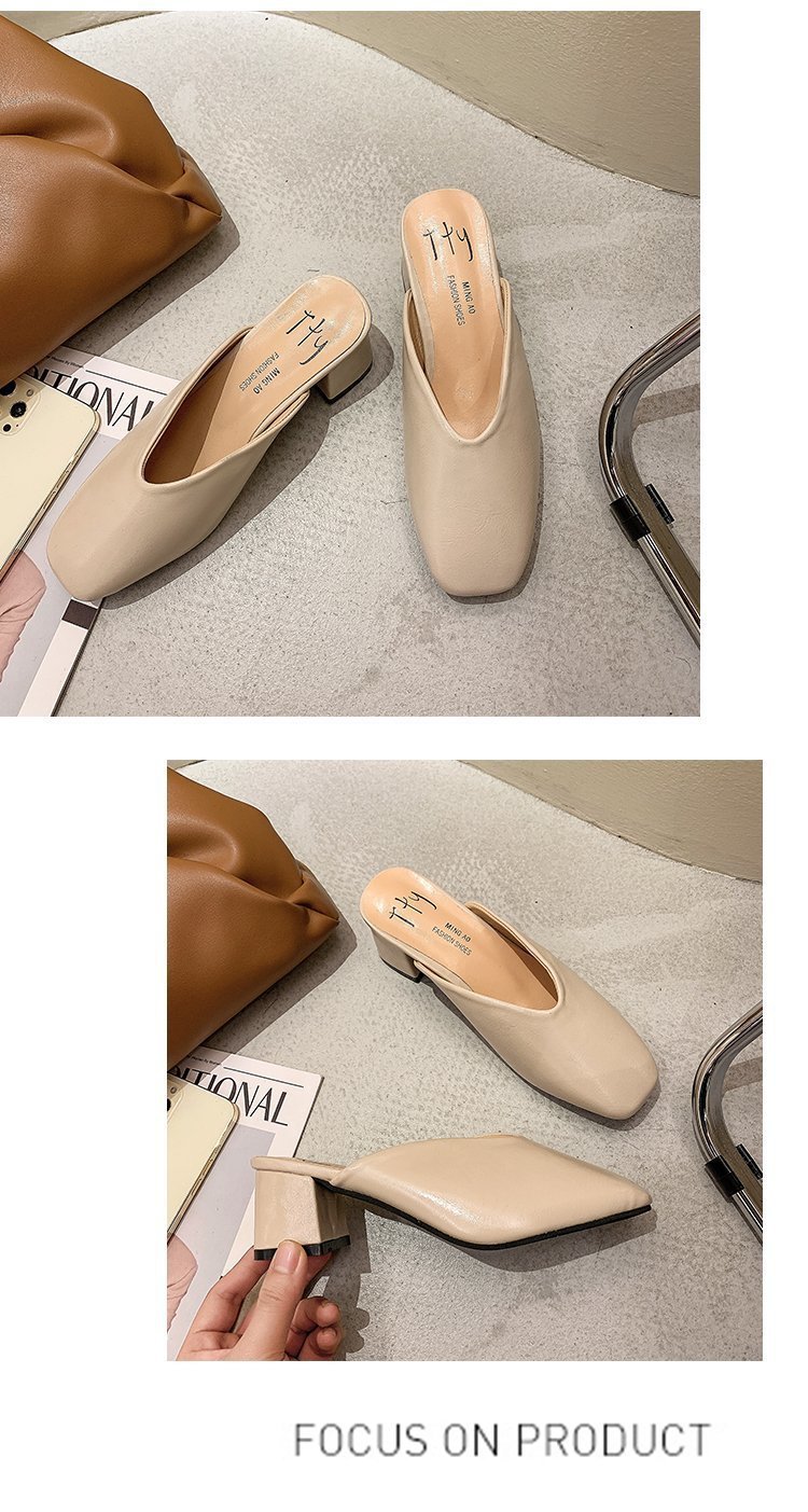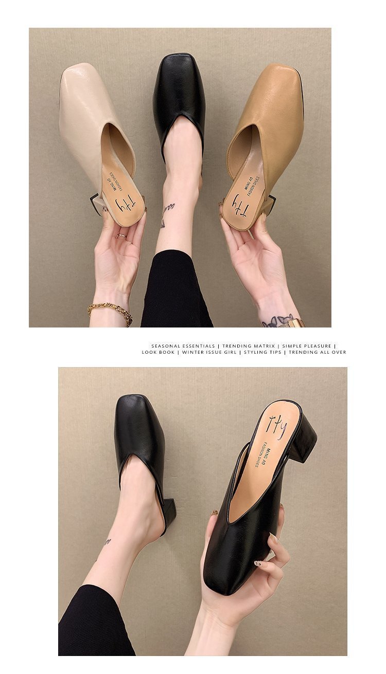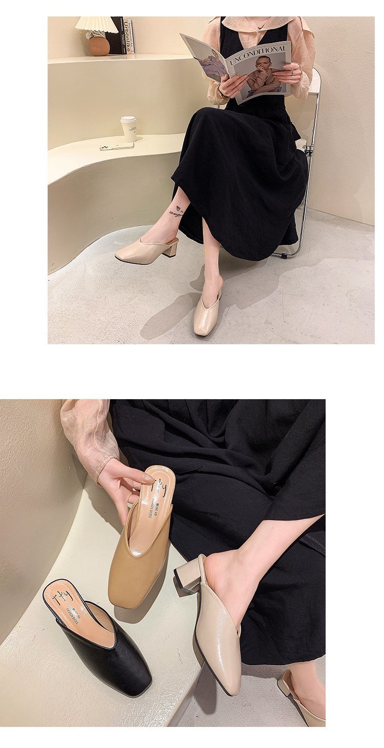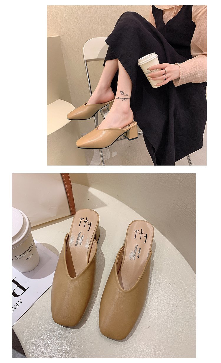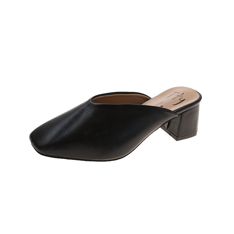 여성용 바오터우 반슬리퍼 2025 여름 신상 스퀘어토 미드힐 한국 스타일 여성 슬리퍼 뮬 슈즈스토어 가기