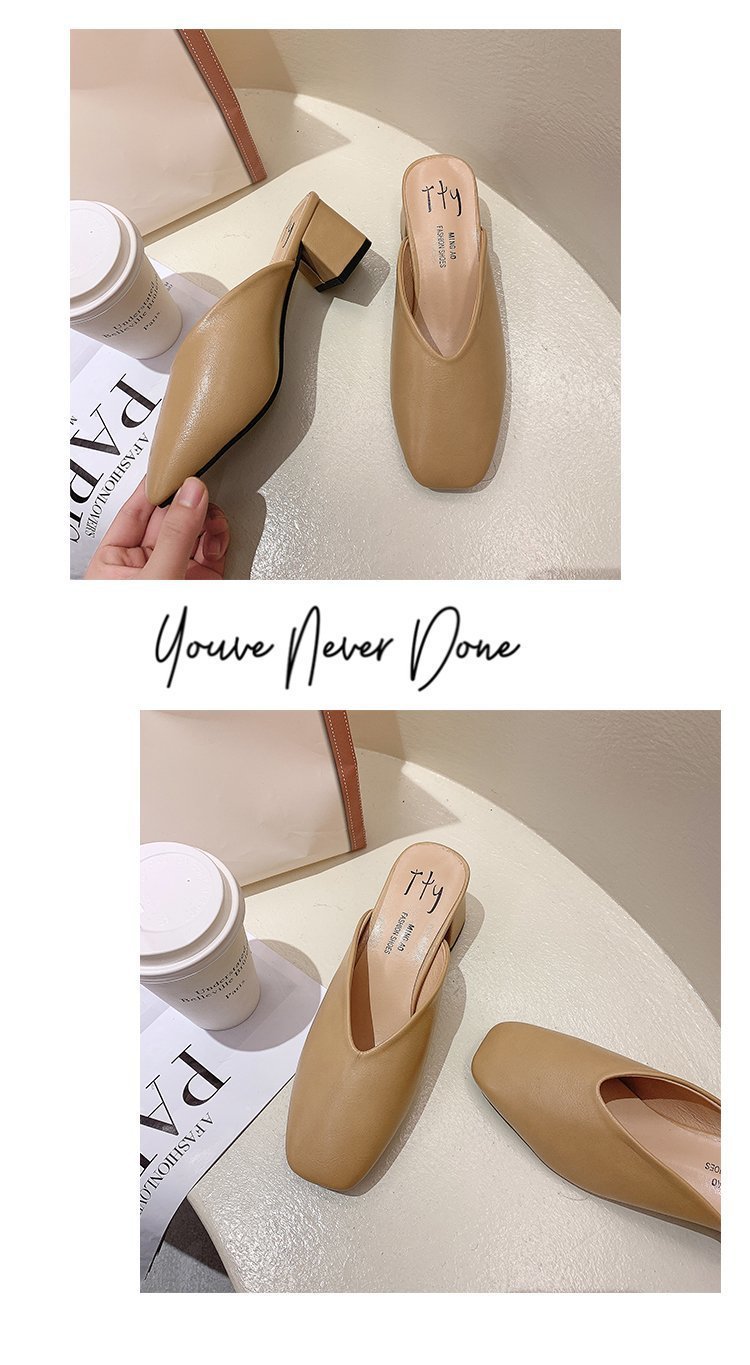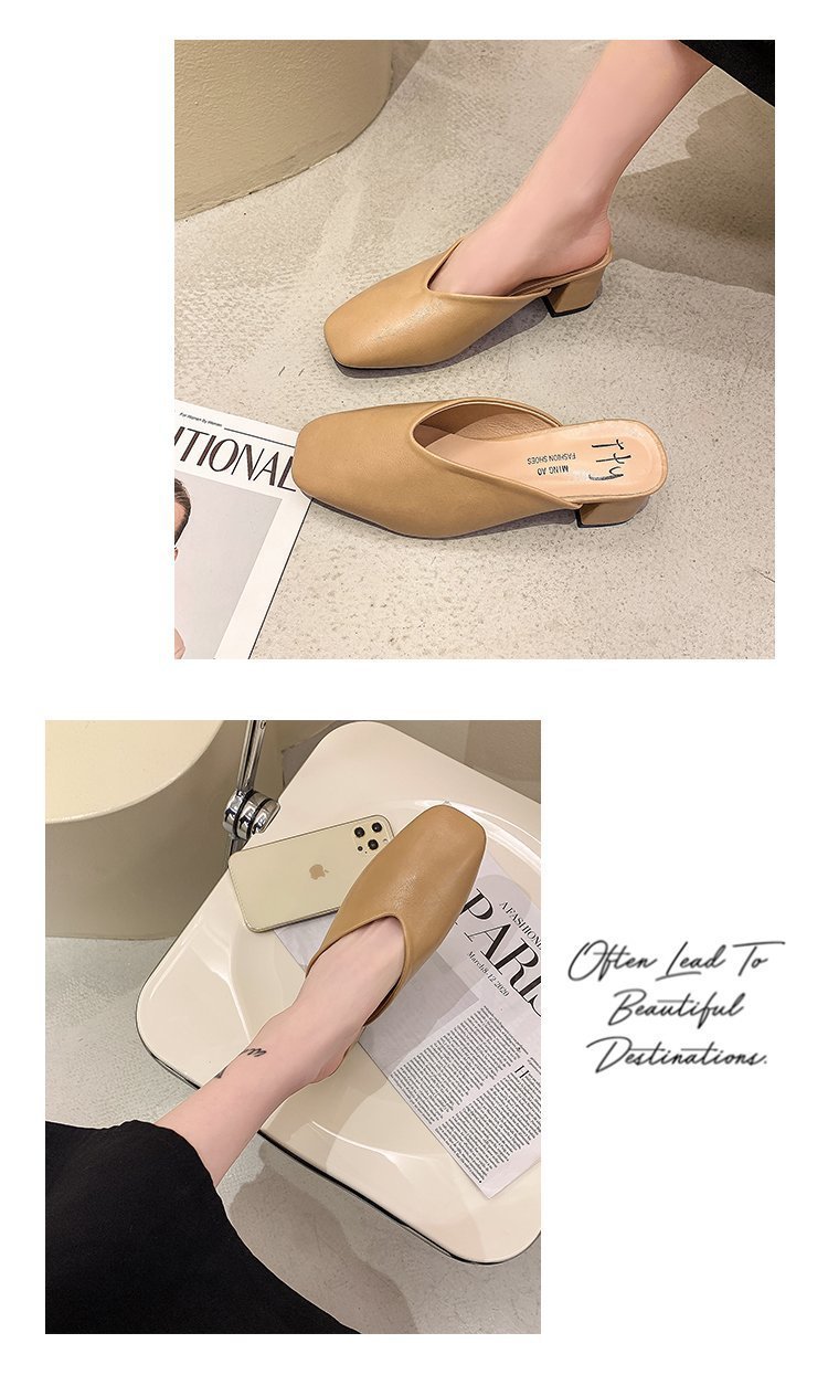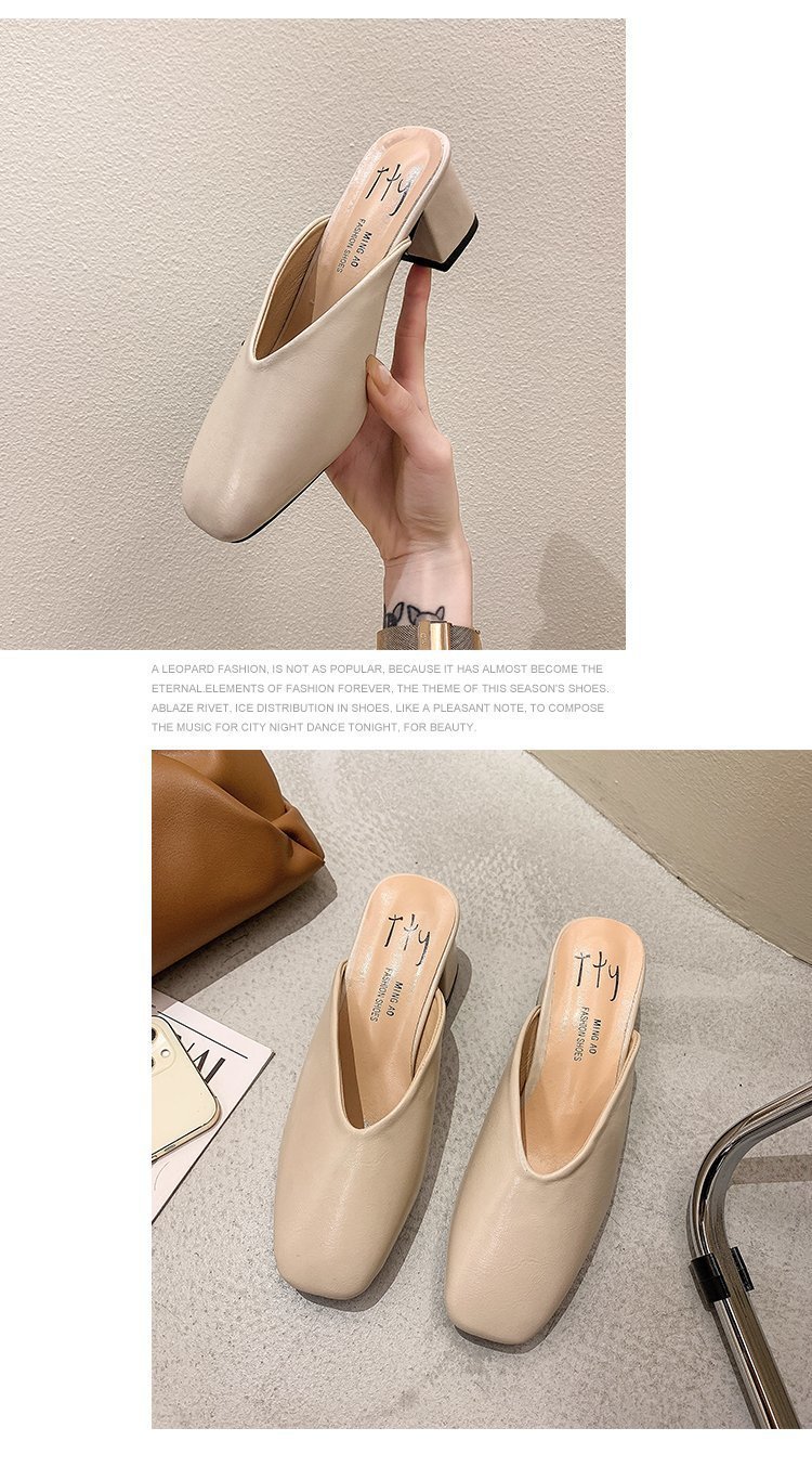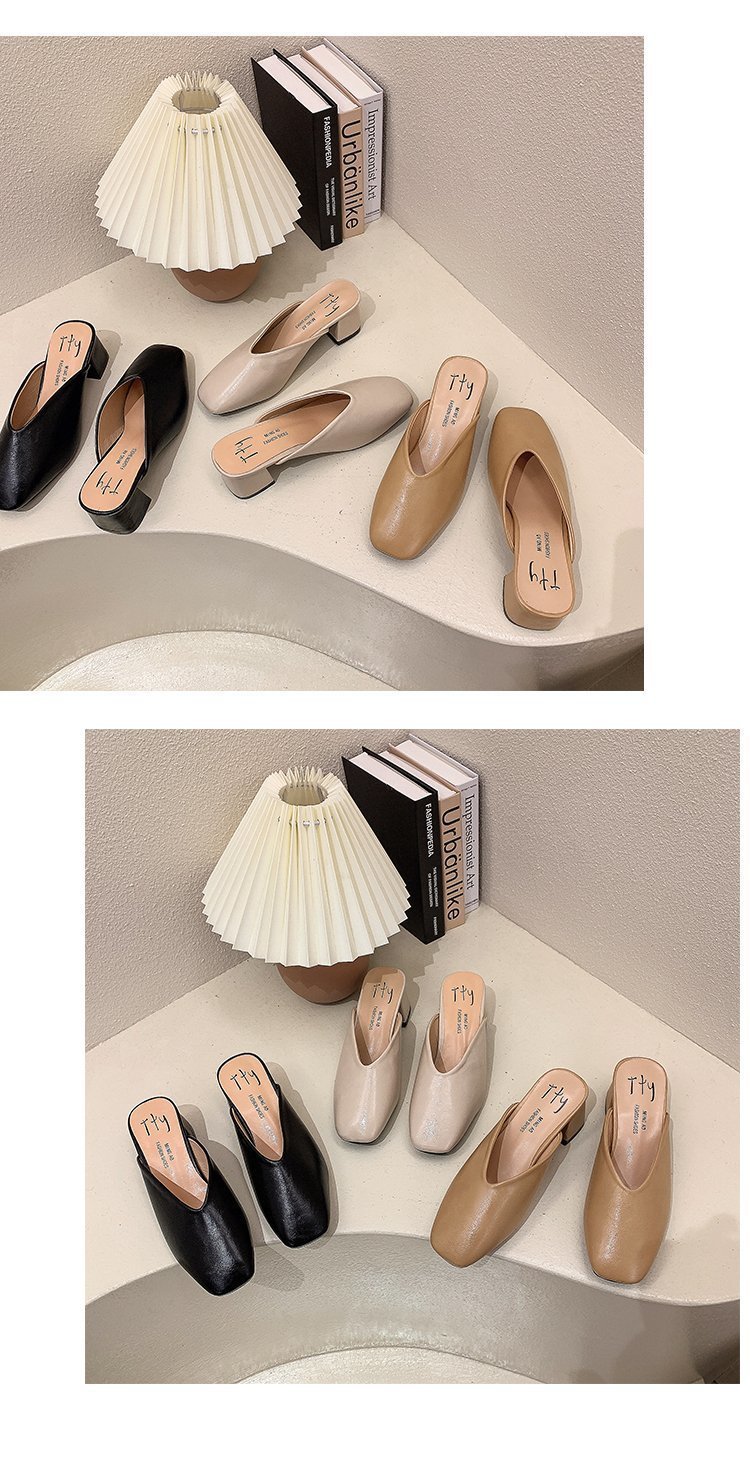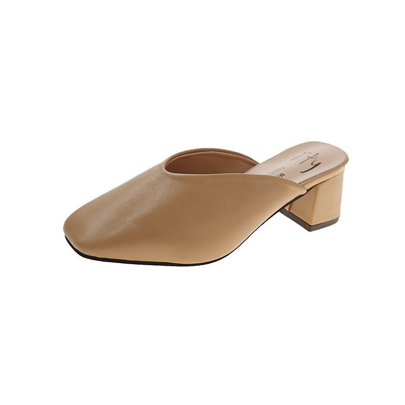 여성용 바오터우 반슬리퍼 2025 여름 신상 스퀘어토 미드힐 한국 스타일 여성 슬리퍼 뮬 슈즈스토어 가기