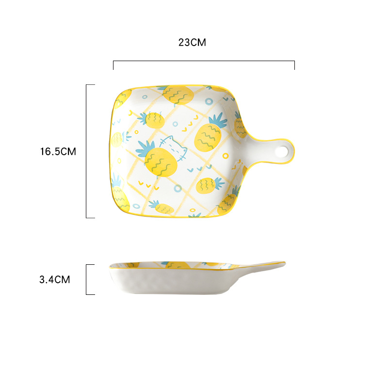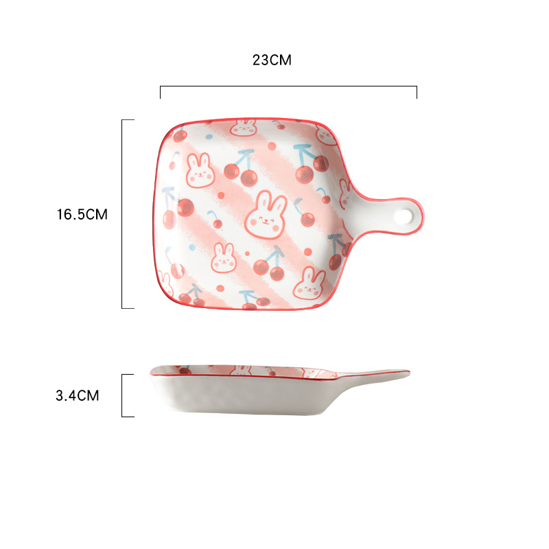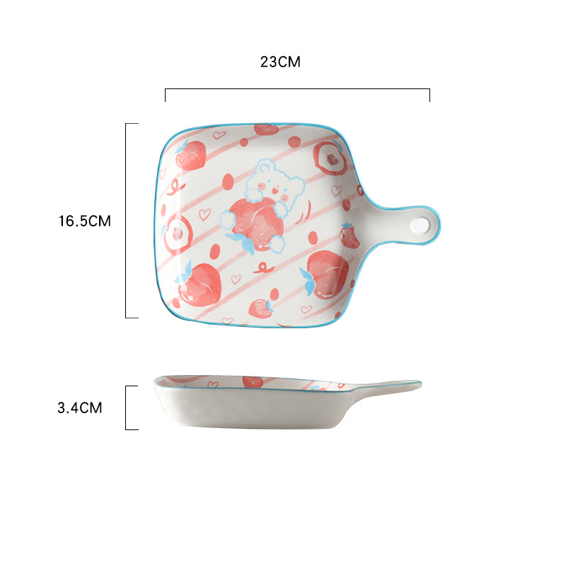 북유럽 귀여운 가정 요리 인터넷-인기있는 크리에이 티브 세라믹 제빵기구 핸들 접시 식기 과일 귀여운 접시 아침 식사 접시