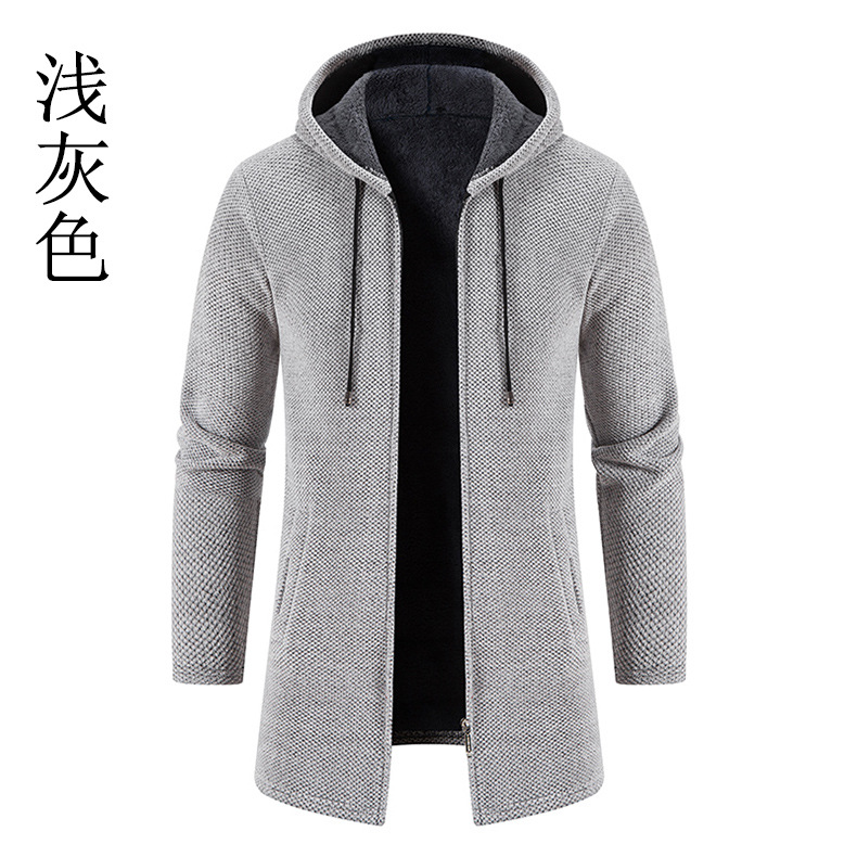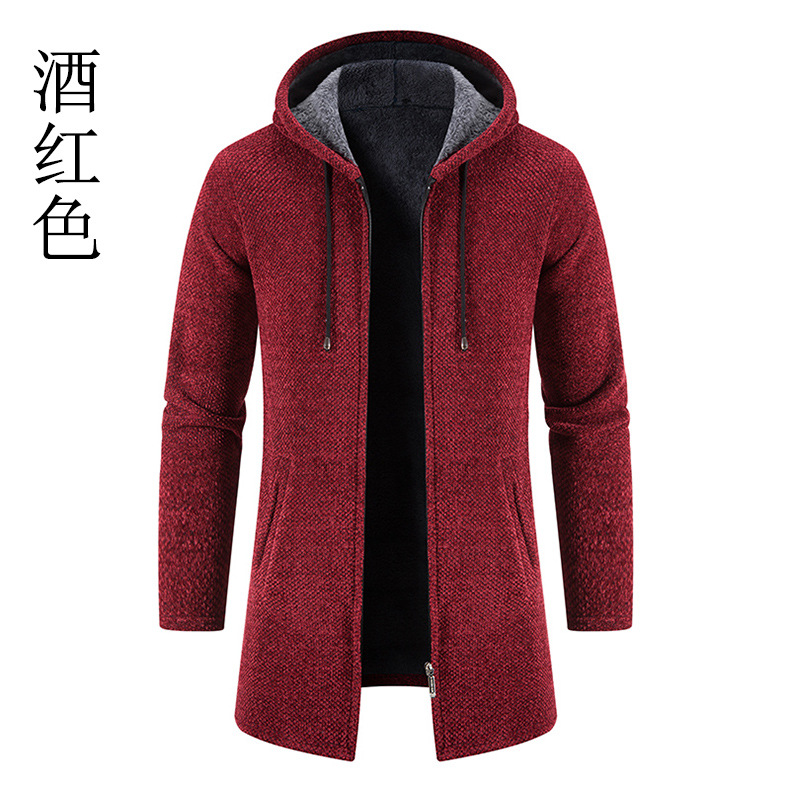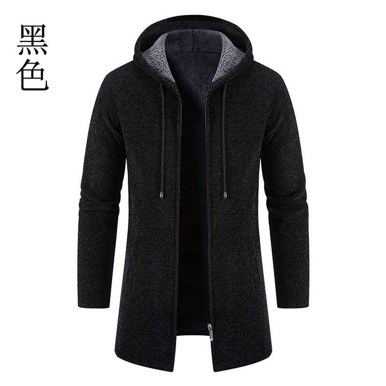 남성용 중간 길이 니트 재킷, 크로스보더 아마존 남성용 기모 두꺼운 셔닐 후드 가디건스토어 가기
