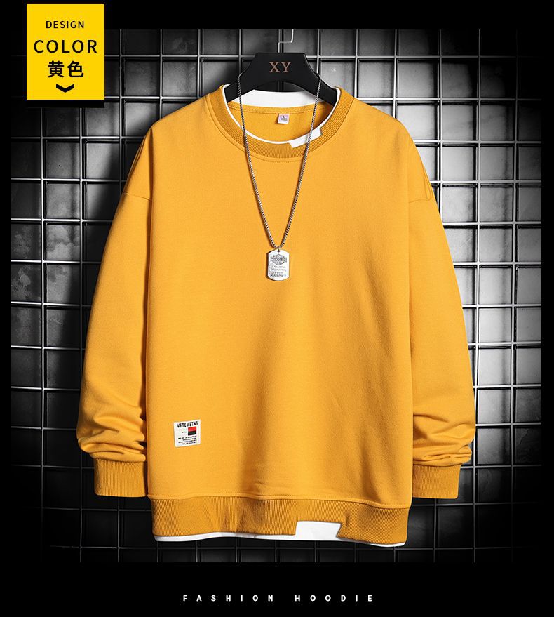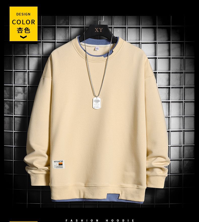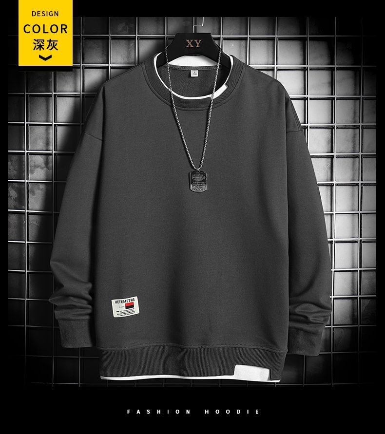 스웨터 소년 가을과 겨울 새로운 트렌디 한 후드리스 크루넥 풀오버 긴 소매 티셔츠 가짜 투피스 루즈한 탑스토어 가기