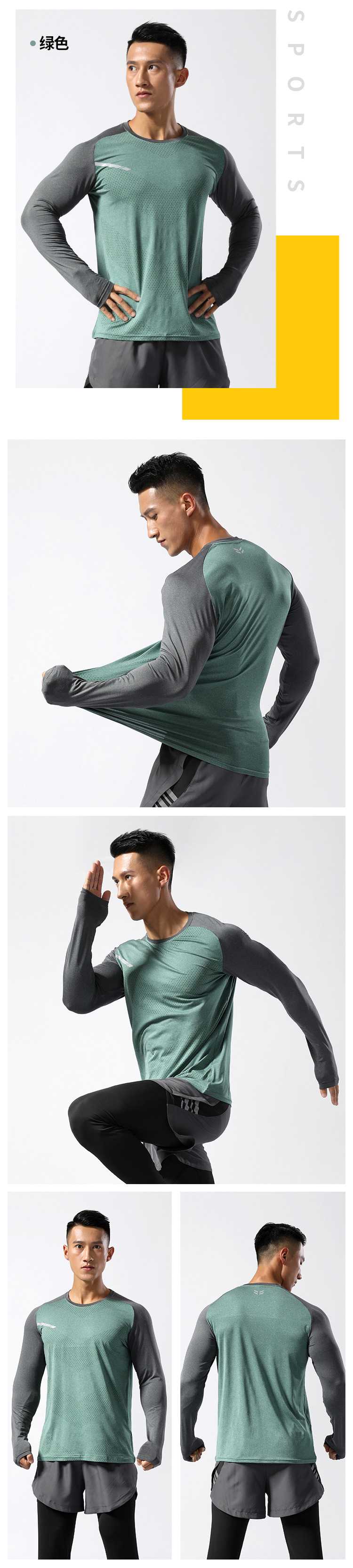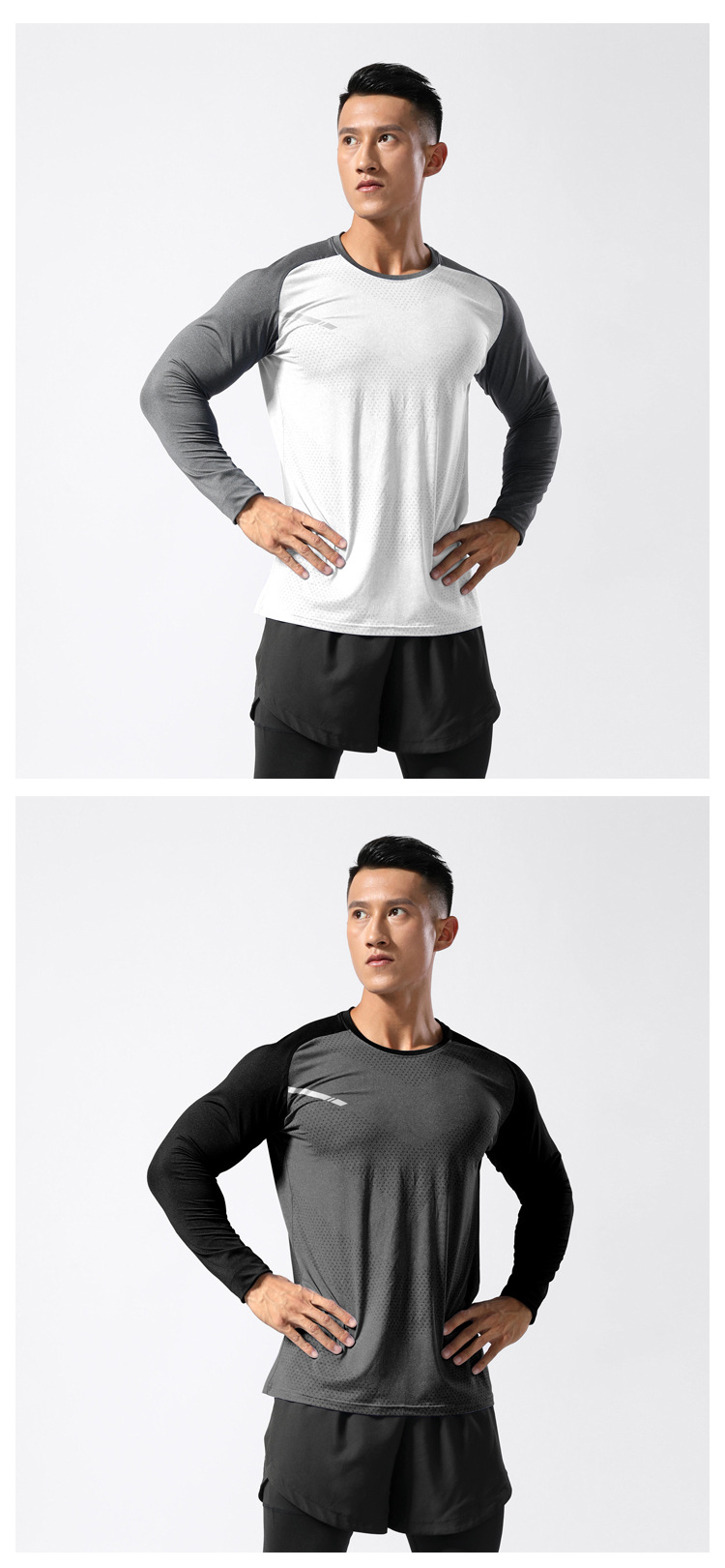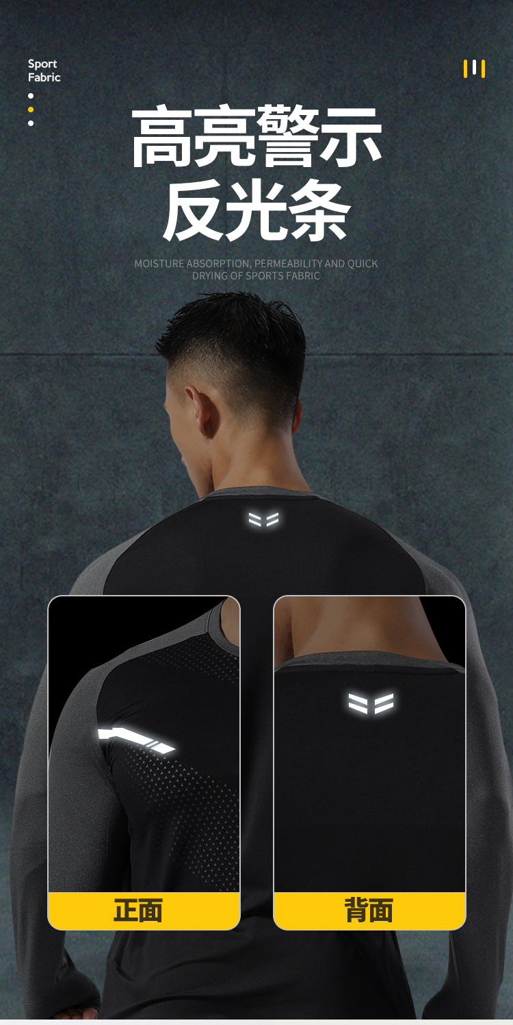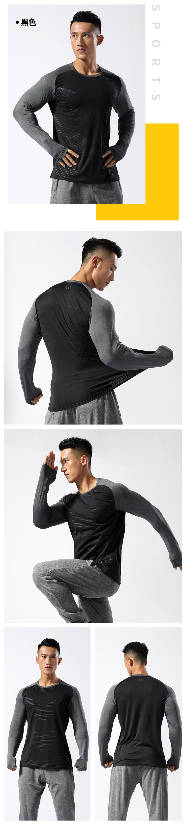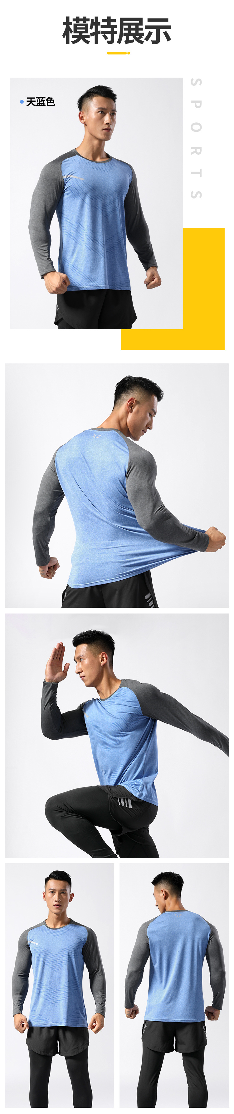 秋冬透气圆领高弹训练运动长袖上衣 户外跑步运动速干衣长袖男款