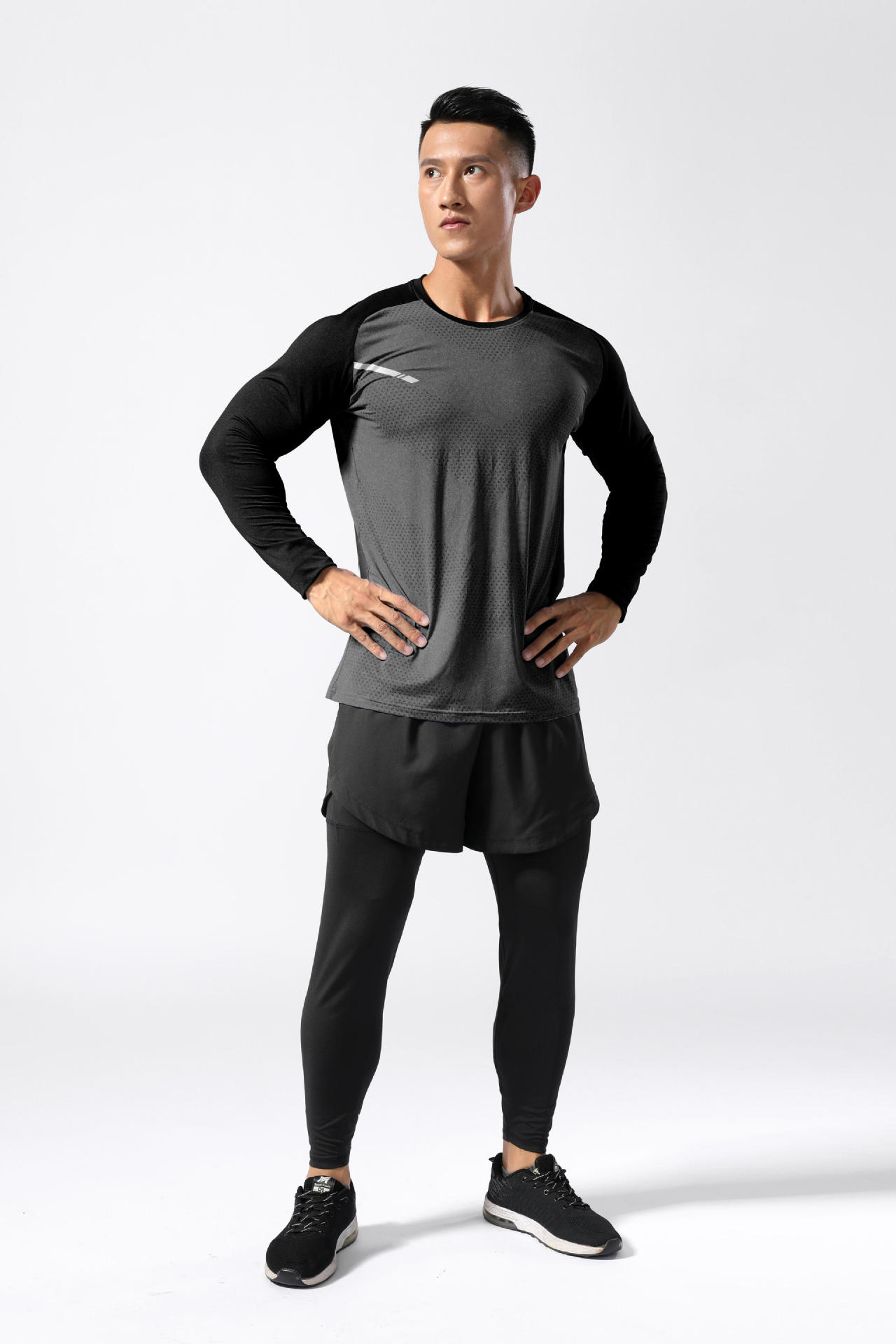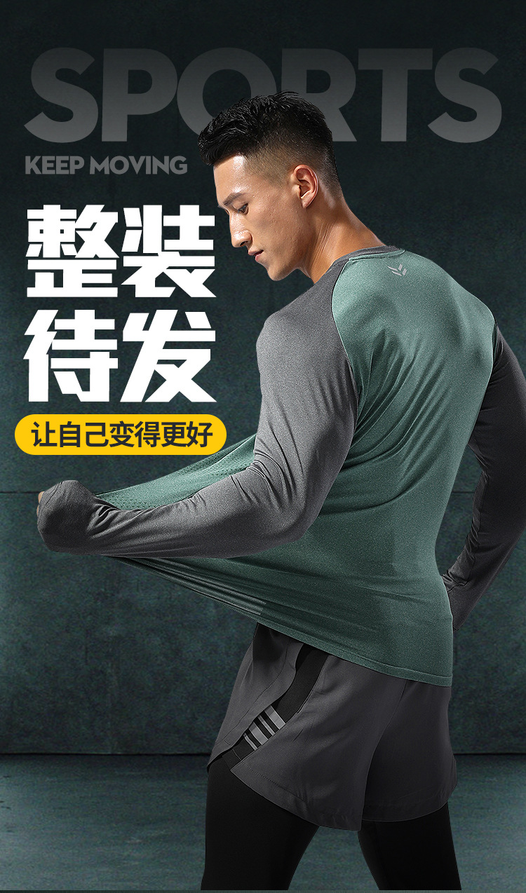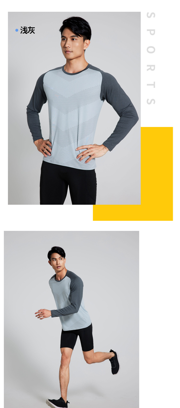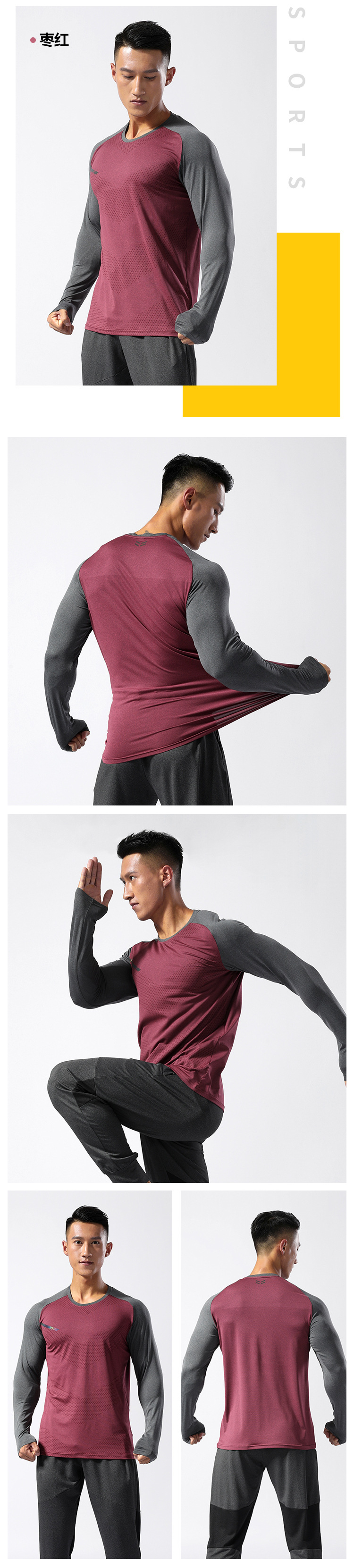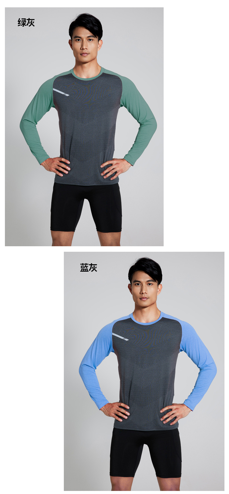 秋冬透气圆领高弹训练运动长袖上衣 户外跑步运动速干衣长袖男款