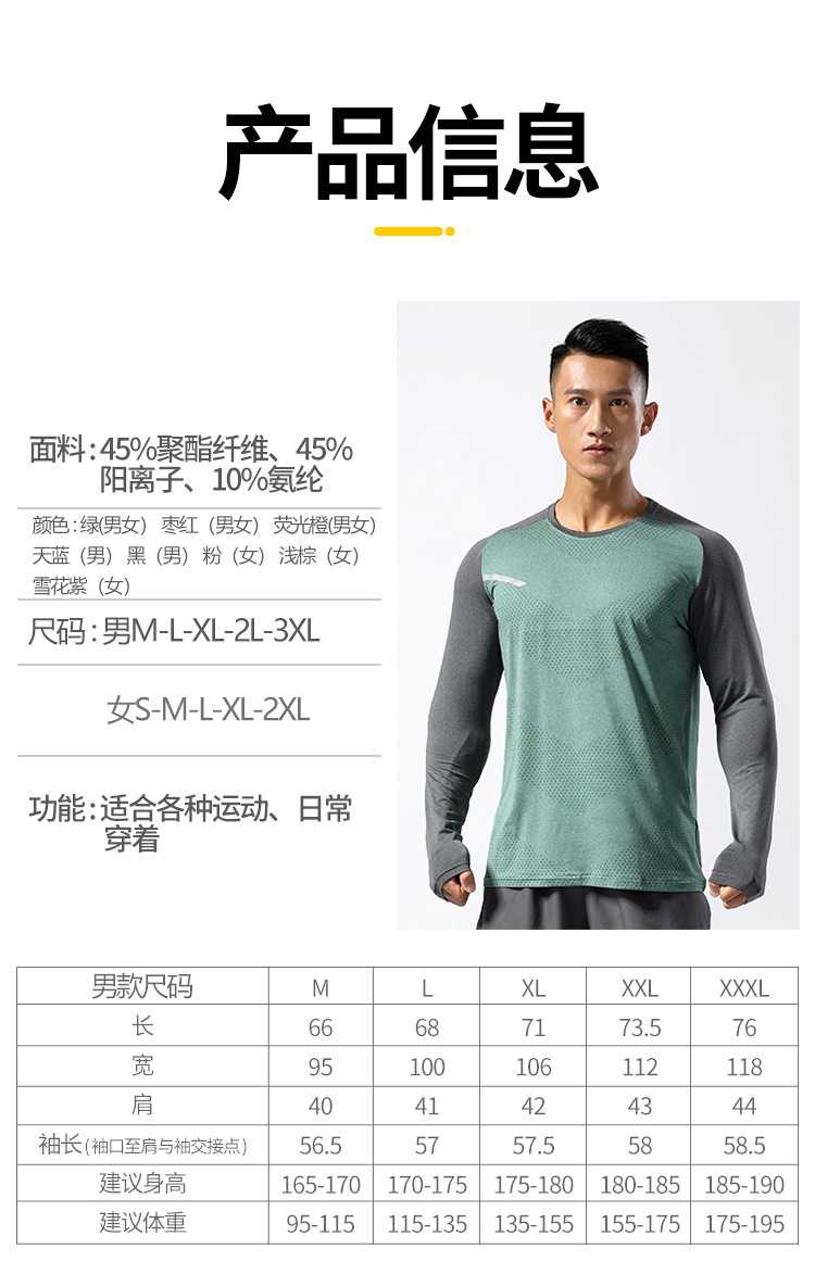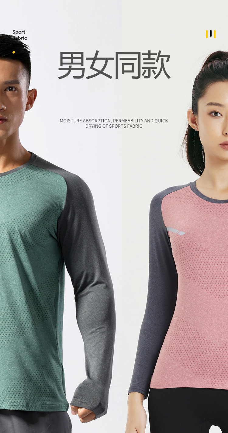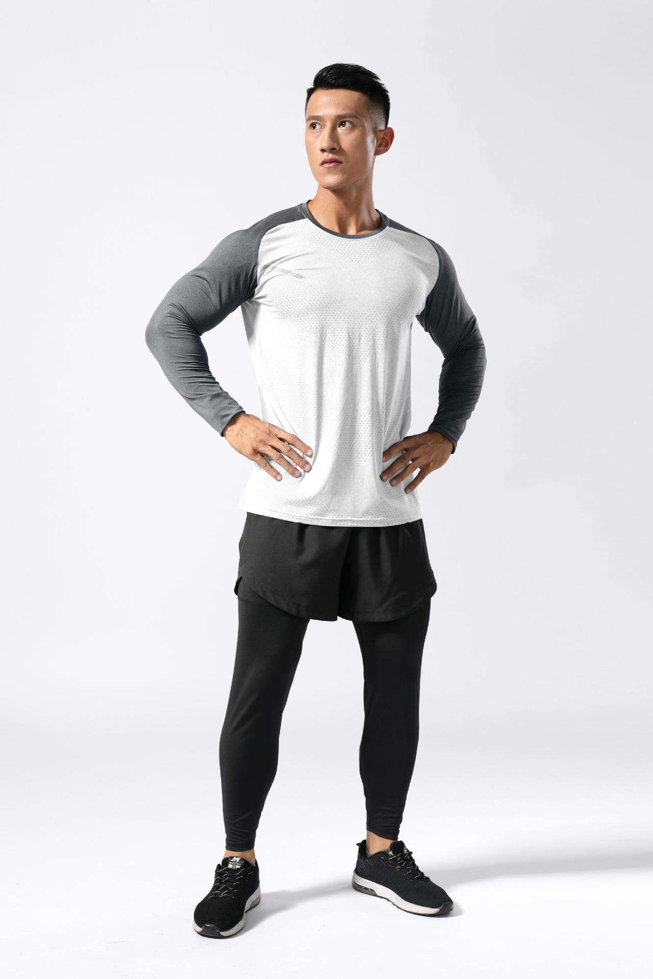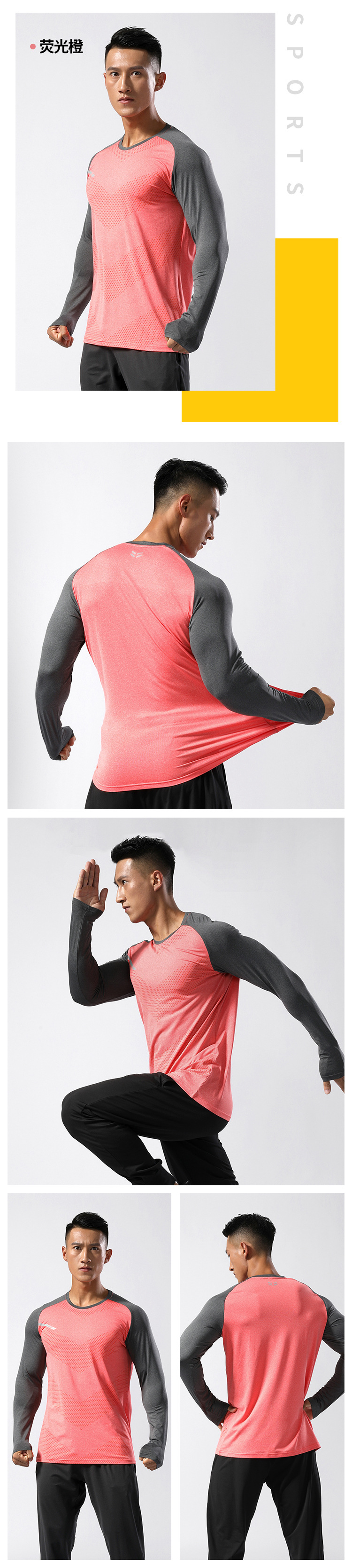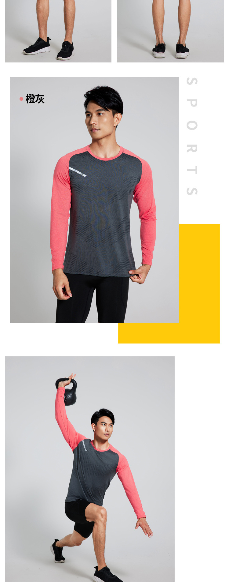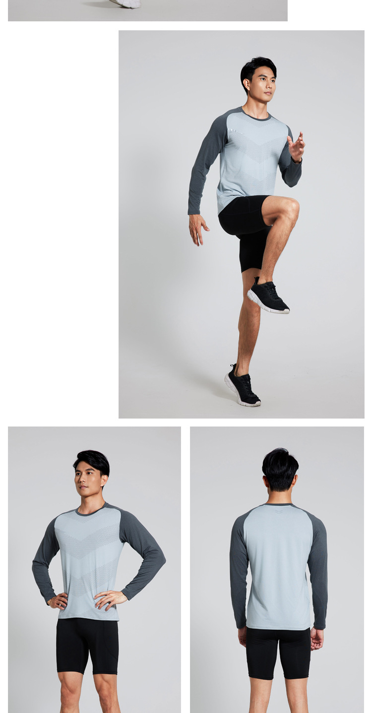 秋冬透气圆领高弹训练运动长袖上衣 户外跑步运动速干衣长袖男款
