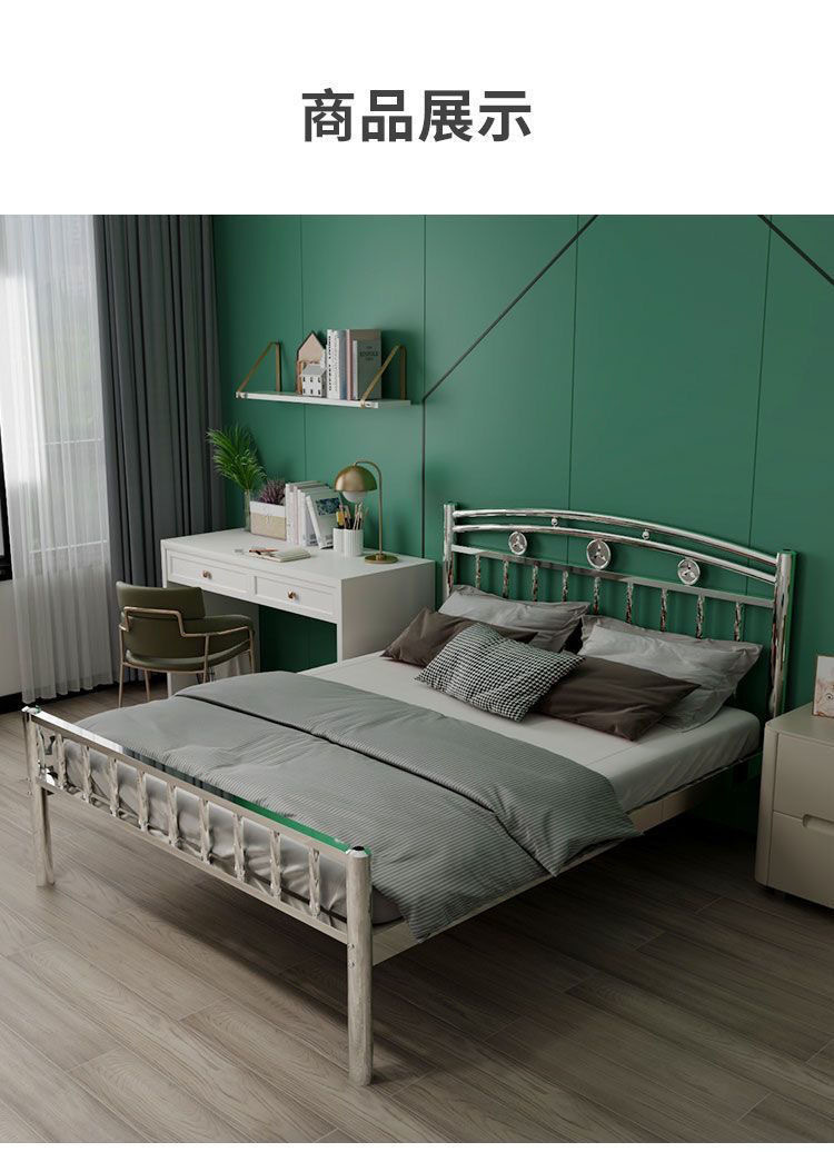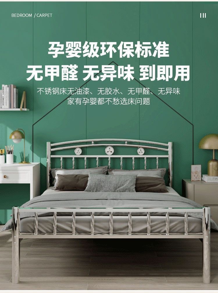 스테인리스 침대 1.8m 아파트 침대, 침실용, 어린이 침대, 철제 침대, 기숙사 침대, 스틸 프레임, 더블 침대, 304 철제 침대, 두꺼운스토어 가기