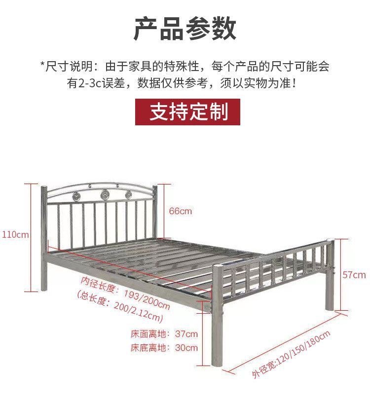 스테인리스 침대 1.8m 아파트 침대, 침실용, 어린이 침대, 철제 침대, 기숙사 침대, 스틸 프레임, 더블 침대, 304 철제 침대, 두꺼운