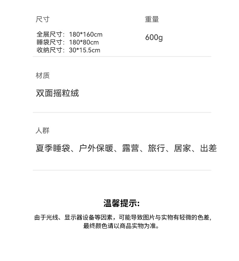 야외 양털 침낭 캠핑 초경량 봉투 싱글 침낭 점심 시간 담요 휴대용 호텔 더티 라이너