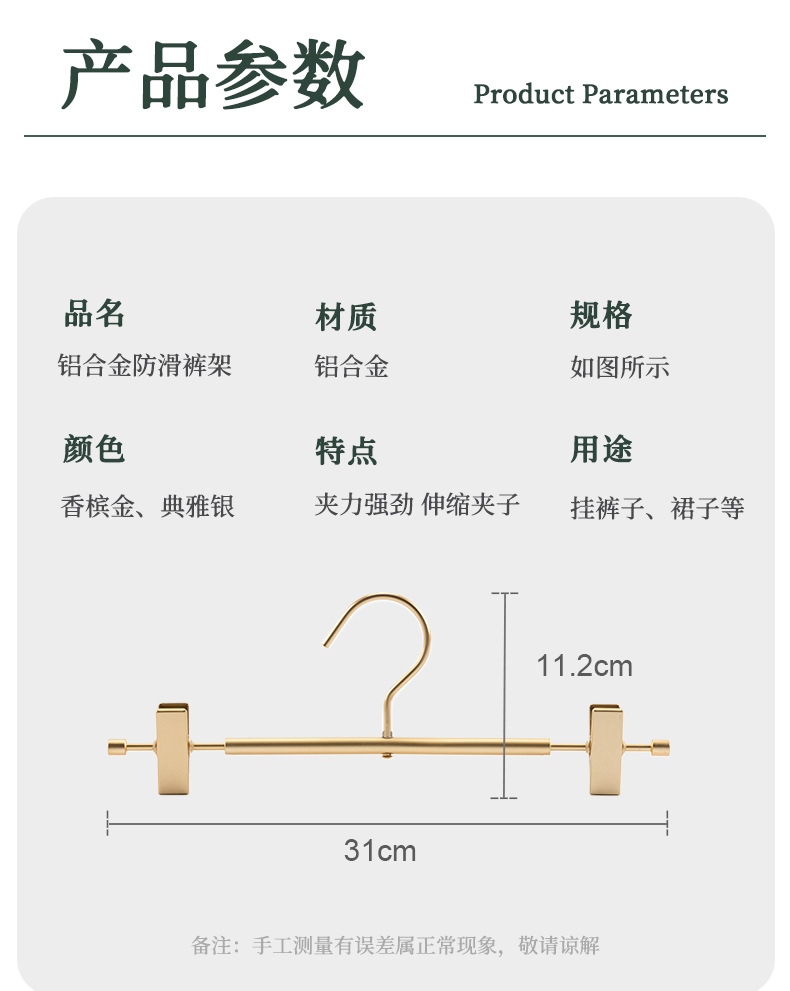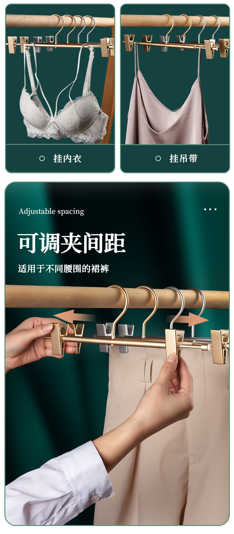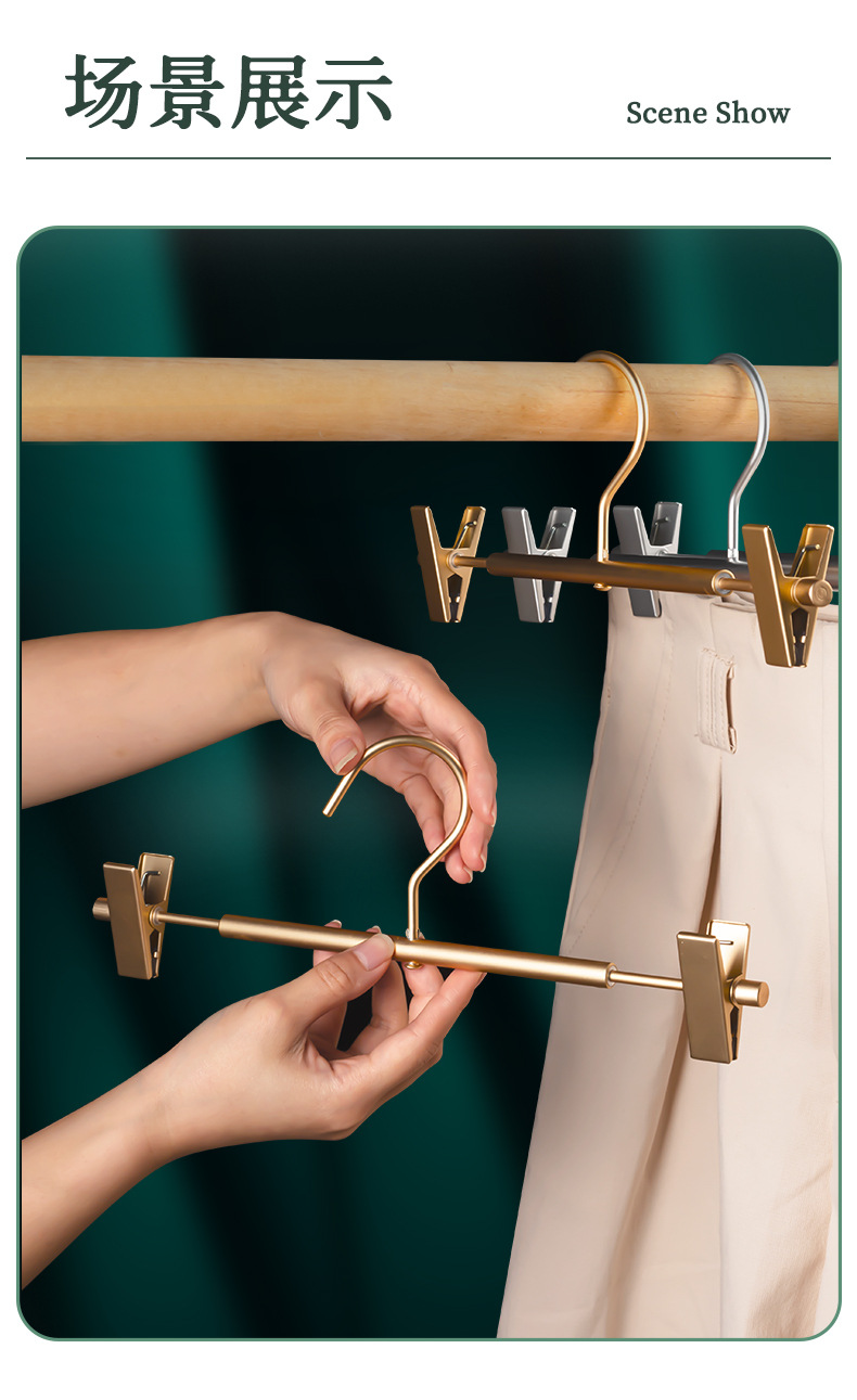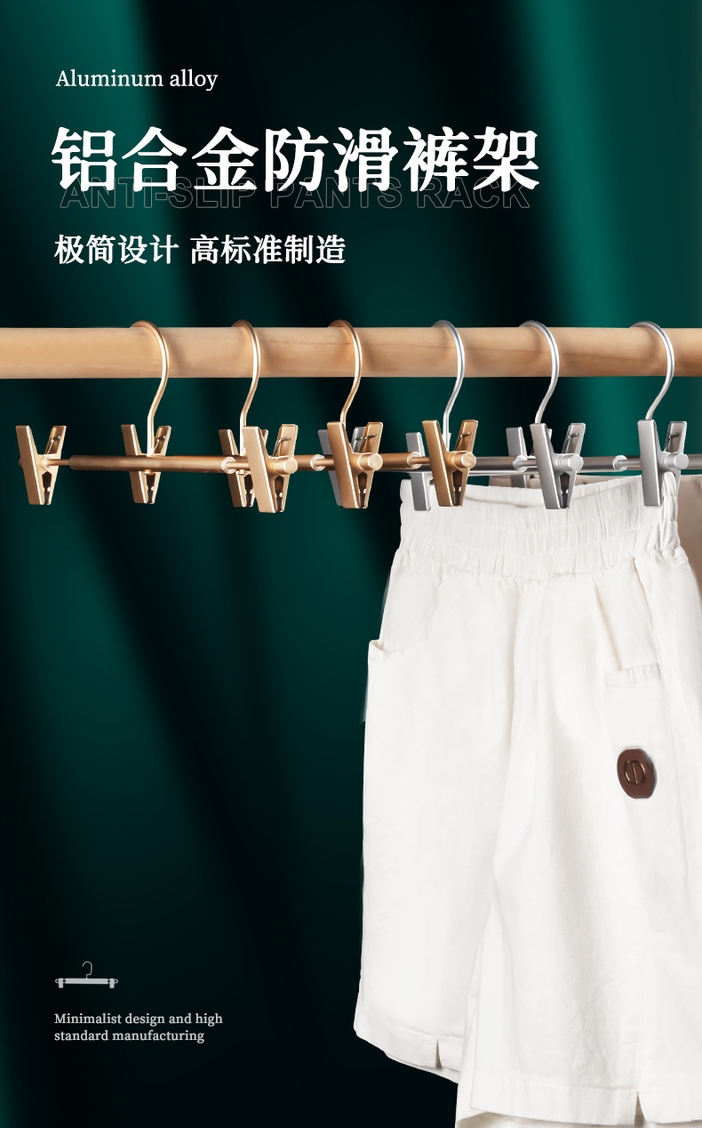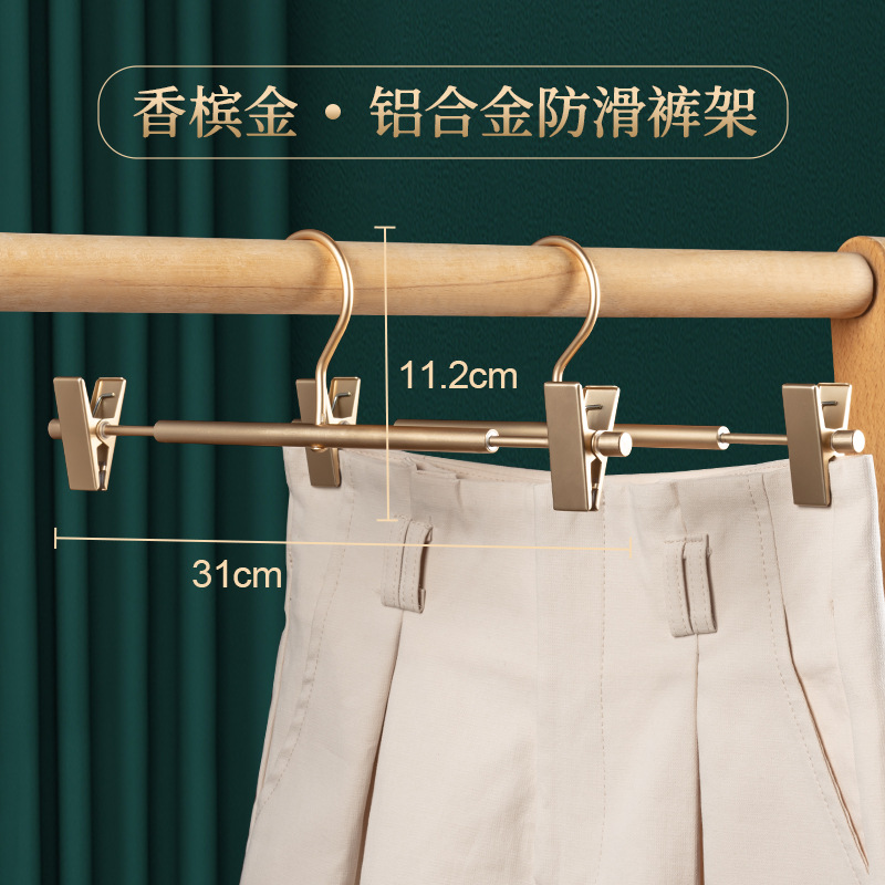 Shunyi 도매 라이트 럭셔리 알루미늄 합금 바지 랙 미끄럼 방지 원활한 스커트 클립 스토리지 성인 및 어린이 바지 클립 옷 걸이 바지 랙