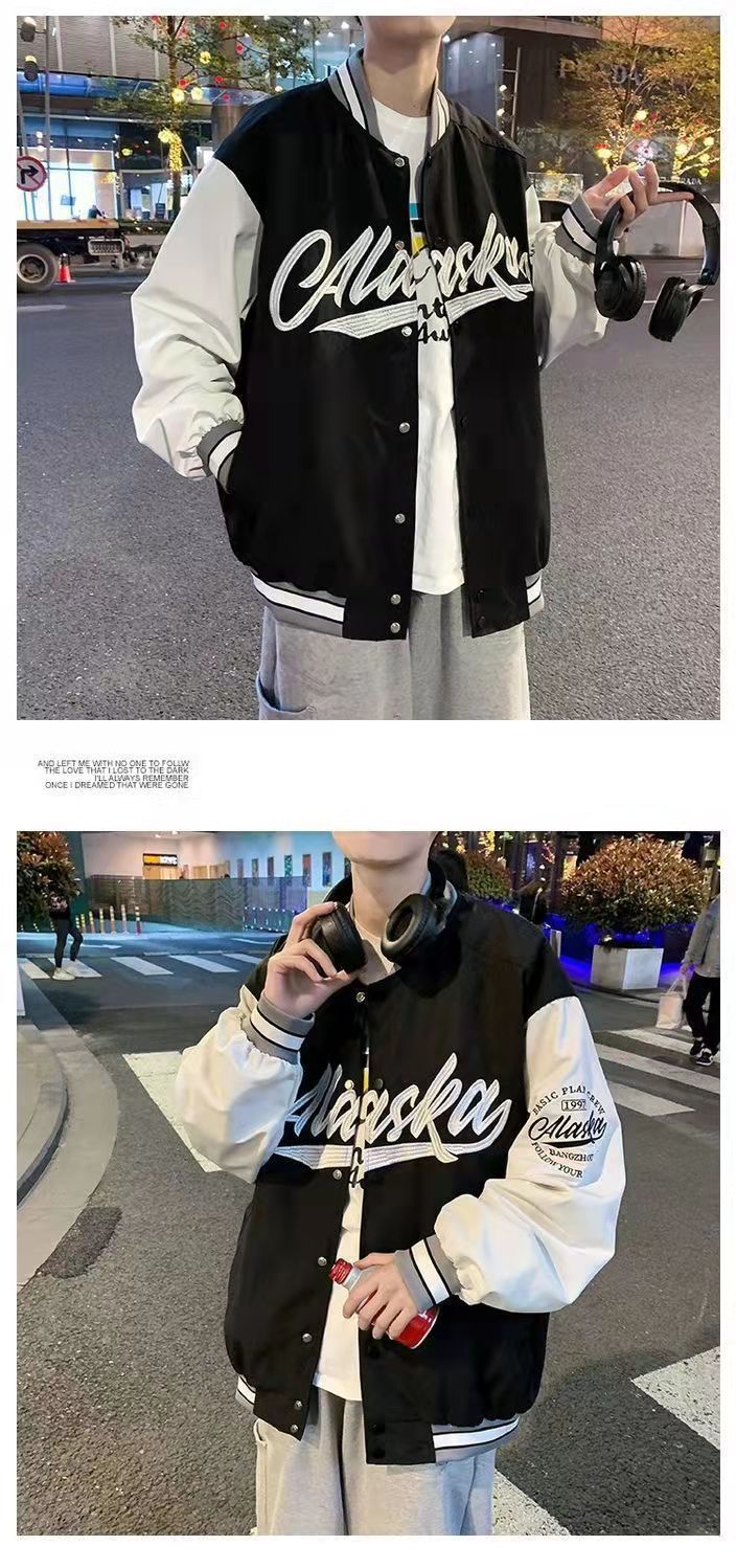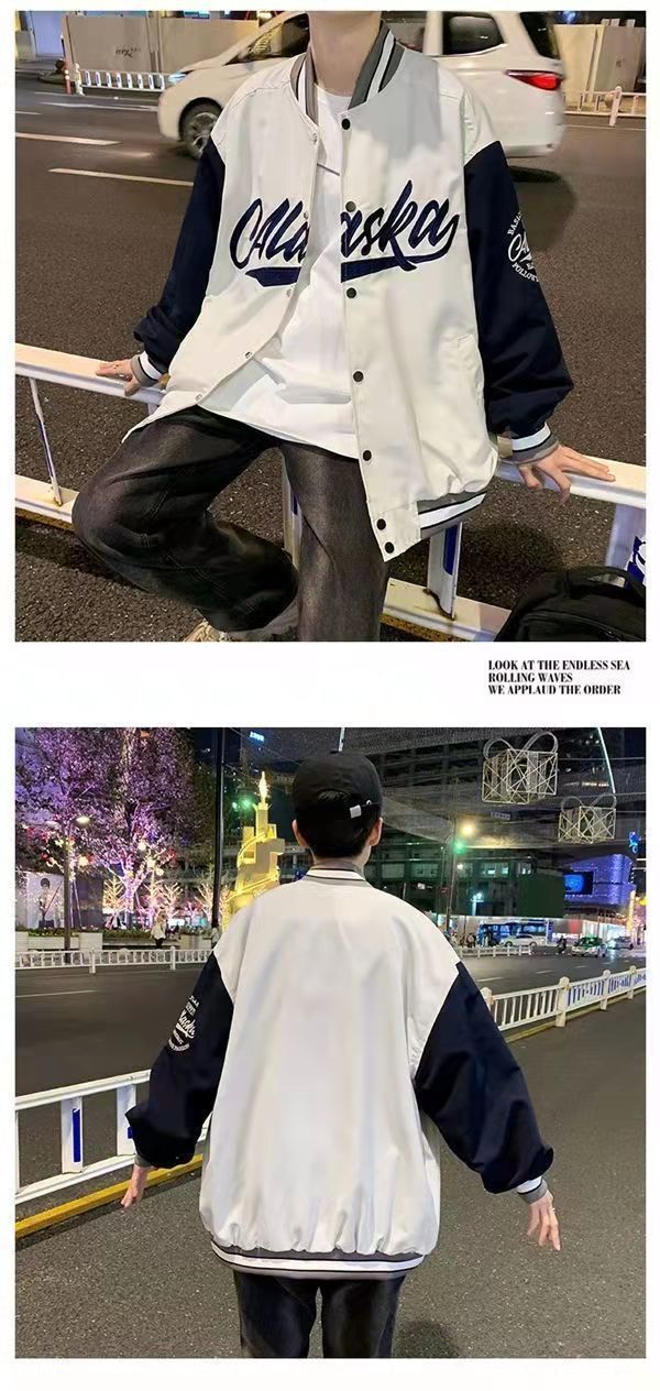 미국 편지 자수 야구 세트 재킷 남자의 가을 유행 브랜드 커플 느슨한 대비 컬러 스티칭 재킷스토어 가기