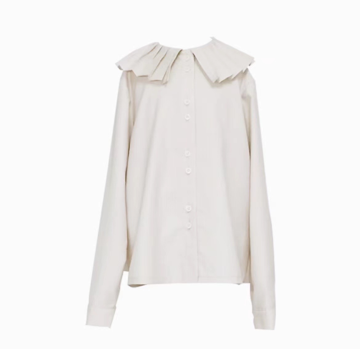 • 살구색 화이트 오르간 플리츠 셔츠 일주일에 예약 구매