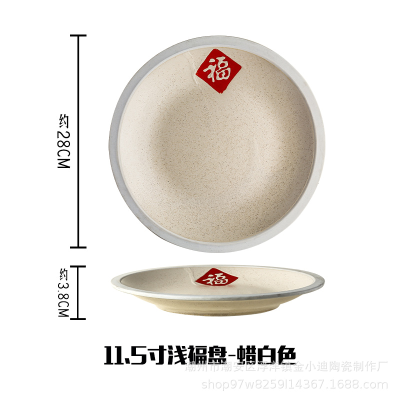 Fuzi 세라믹 디너 플레이트 11.5 인치 플랫 에지 라이트 푸지 플레이트 멀티 사이즈 컬러 선택 상업용 레트로 추천 디너 플레이트스토어 가기