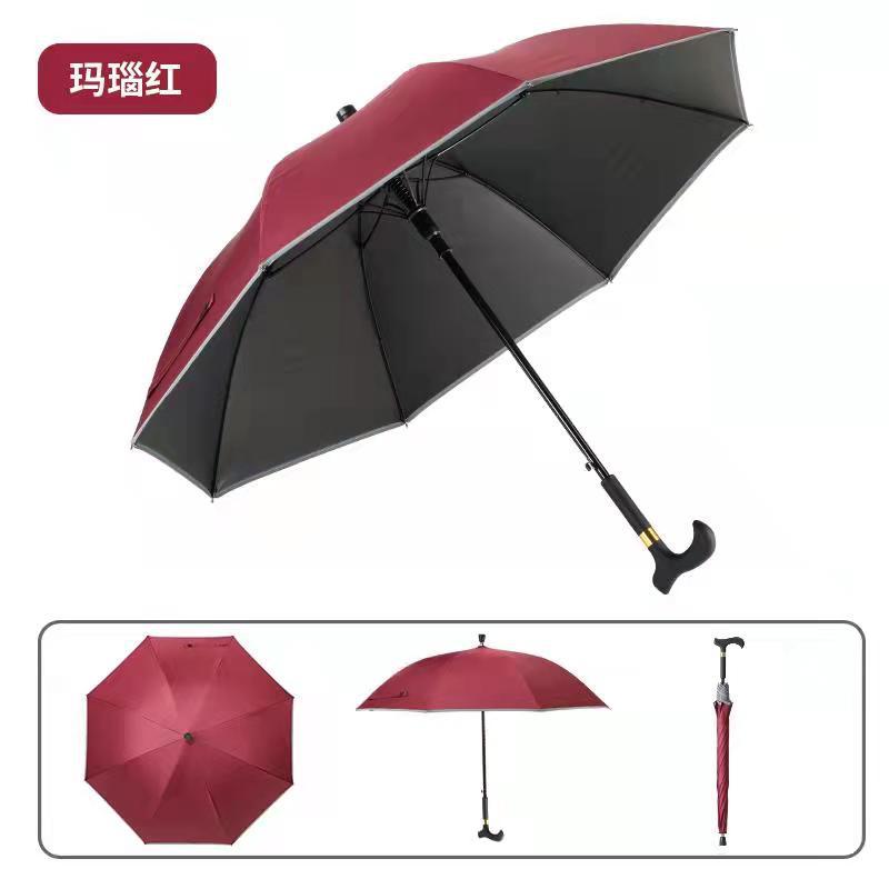 노인 목발 선 스크린 방수 미끄럼 방지 고무 가벼운 등산 이중 용도 다기능 우산 안전 반사 비 우산