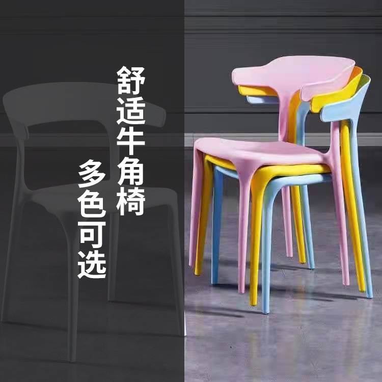 塑料椅厂家直供户外牛角椅餐椅简约休闲椅经济型塑胶靠背加厚椅子