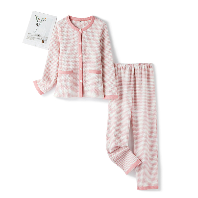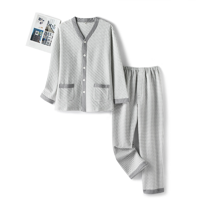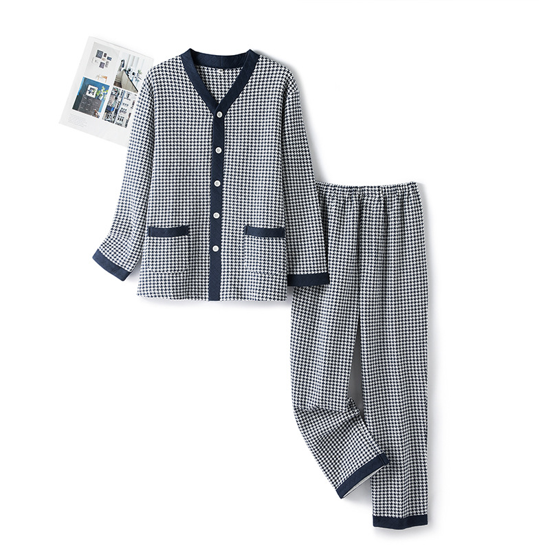 남자와 여자의 면 에어 레이어 커플 컬러 houndstooth 잠옷 세트 가정 옷 도매 세대스토어 가기