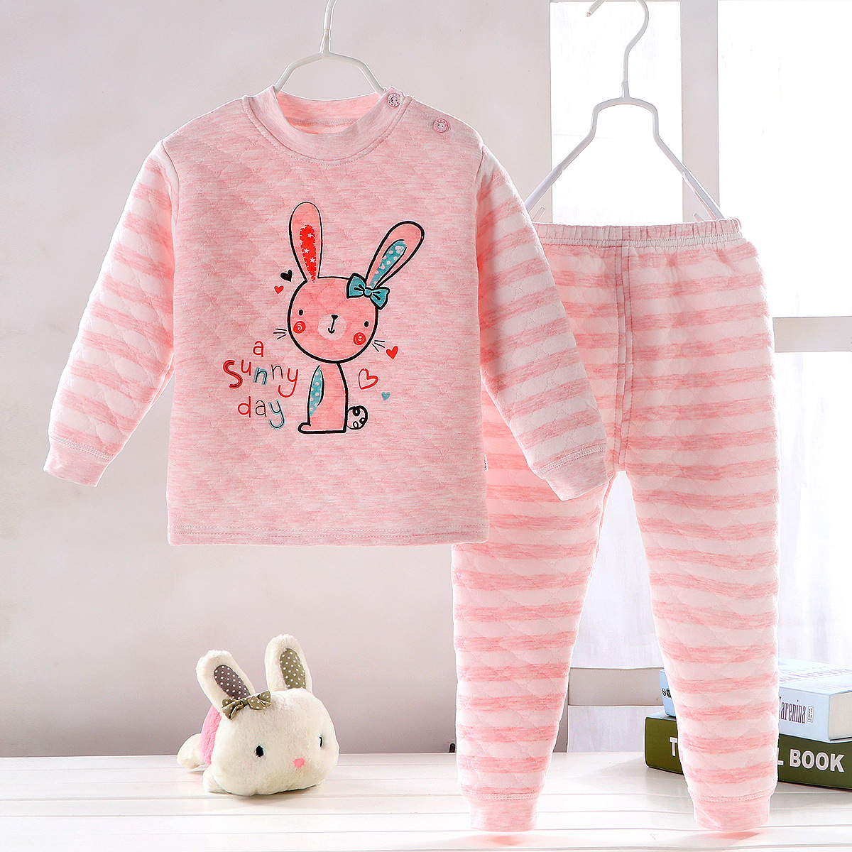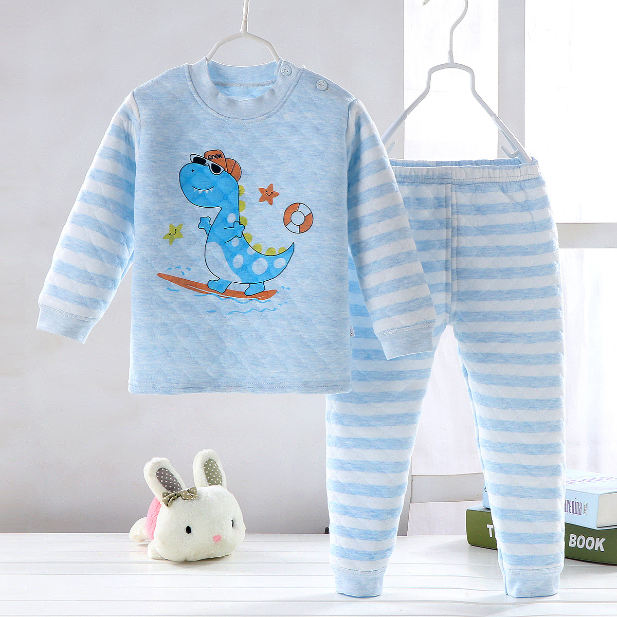 어린이 누비 이불 열 속옷 세트 면 3 층 두꺼운 따뜻한 옷 가을 옷 가을 바지 아기 세트 가을과 겨울스토어 가기
