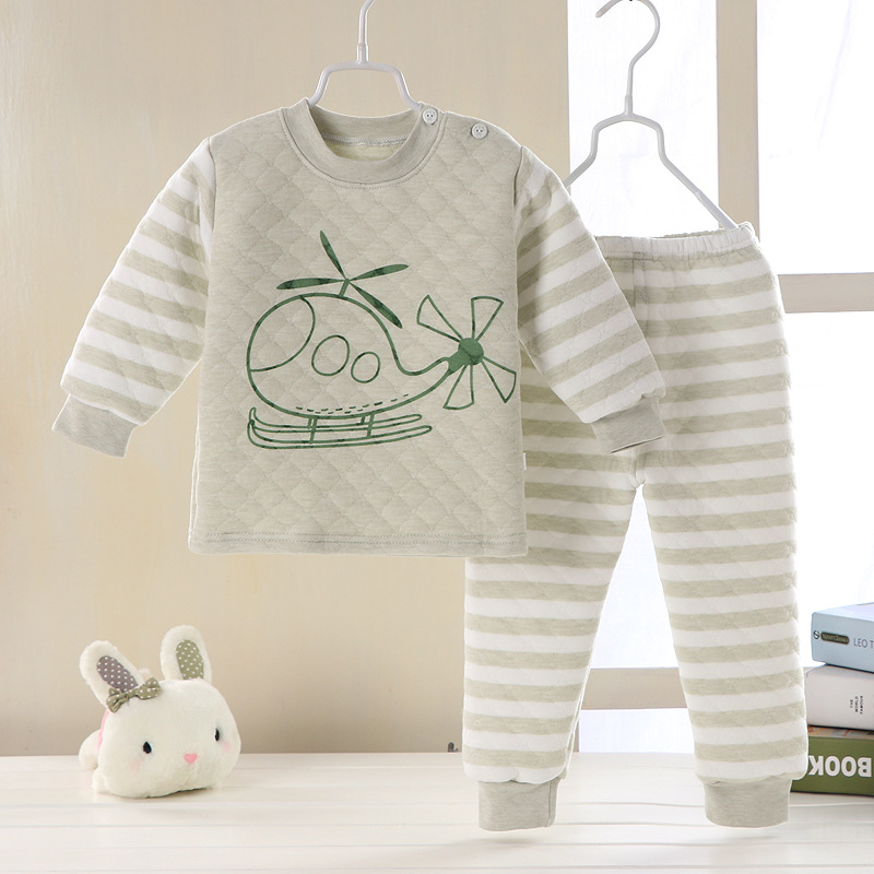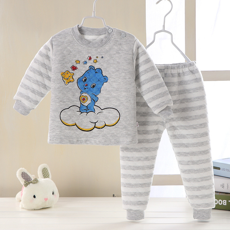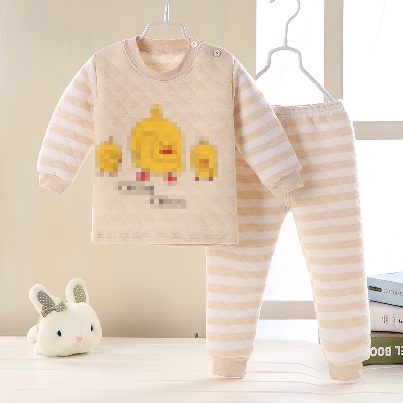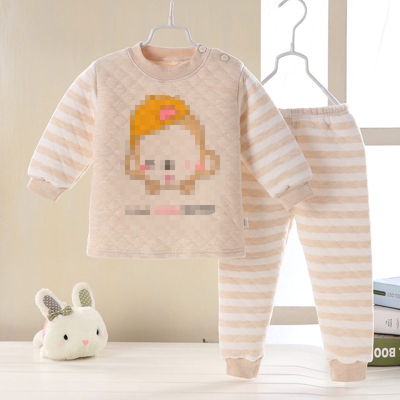 어린이 누비 이불 열 속옷 세트 면 3 층 두꺼운 따뜻한 옷 가을 옷 가을 바지 아기 세트 가을과 겨울