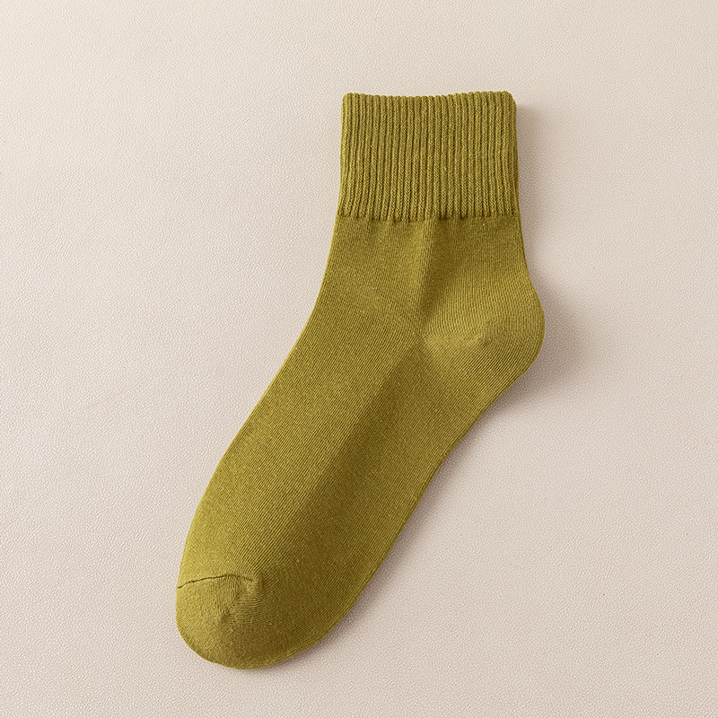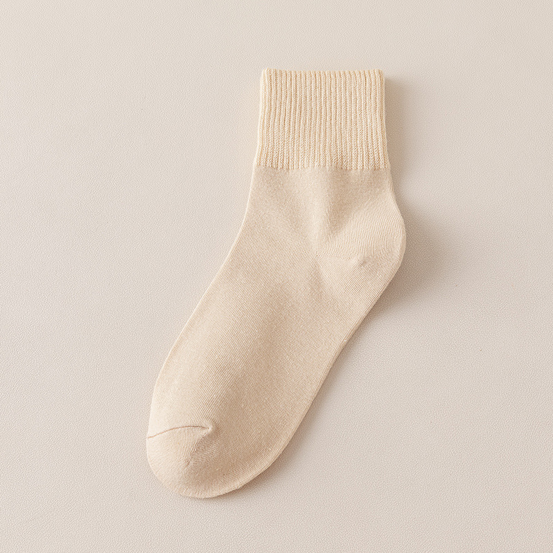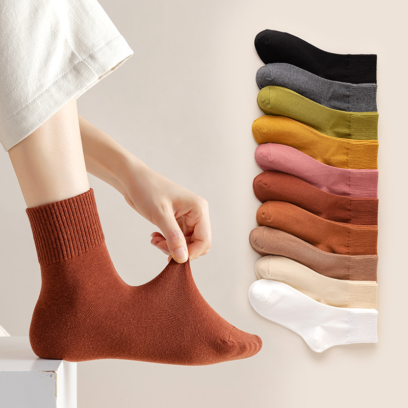새로운 가을과 겨울 양말 여성용 중간 길이 양말 흰색 단색 와이드 Rakou 일본면 긴 여성용 캔디 컬러 스타킹스토어 가기