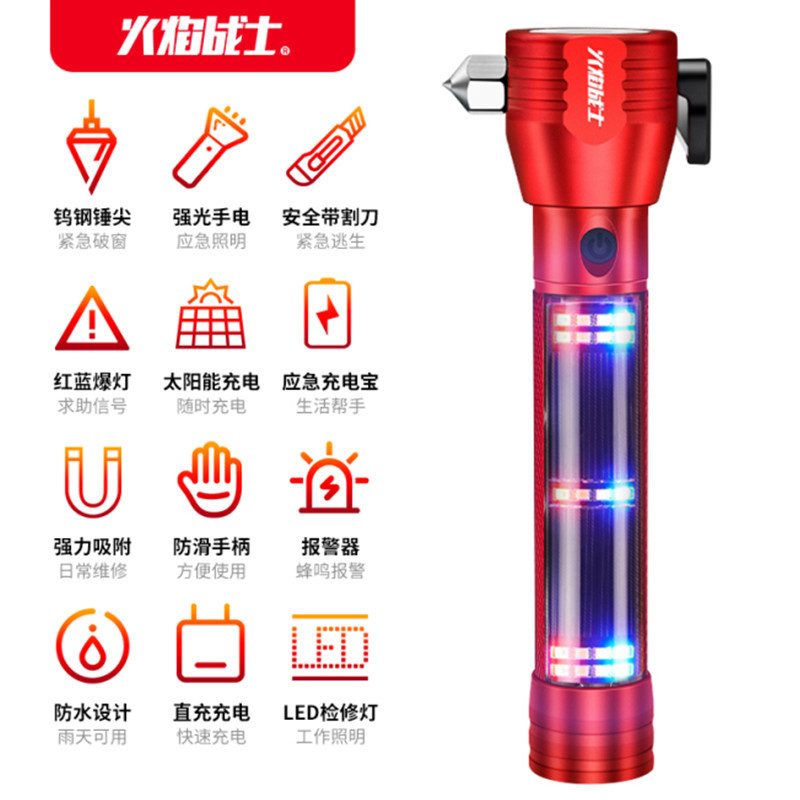 다기능 안전 망치, 태양광 강력 자석 경보기, 조명, 강력한 손전등, 자동차 생명을 구하는 창문 파쇄 망치