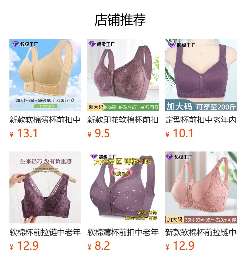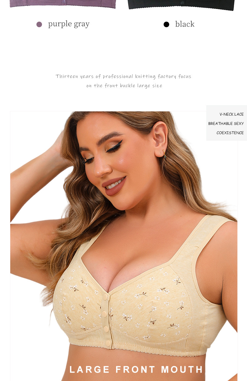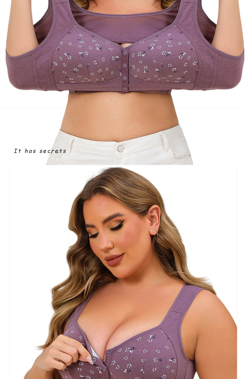 프린트 무늬가 있는 노인 여성용 앞후크 브라, 와이드 숄더 스트랩, 노와이어, 탱크탑 스타일, 신상품, 라지 사이즈스토어 가기