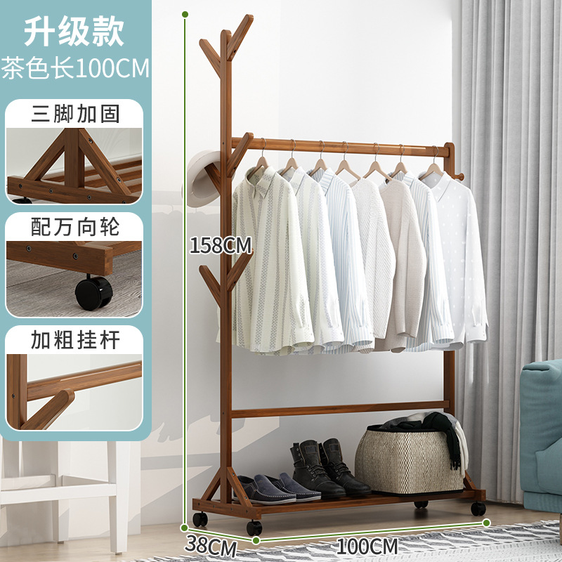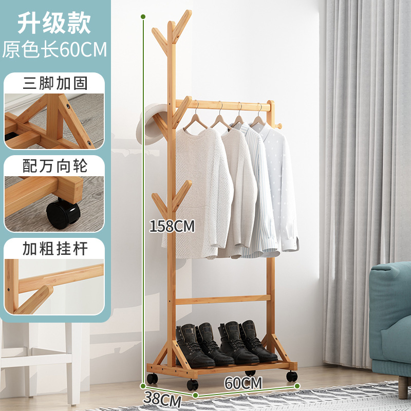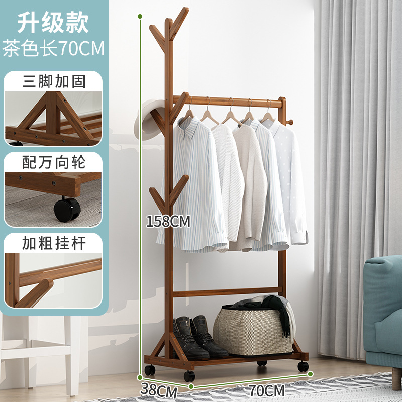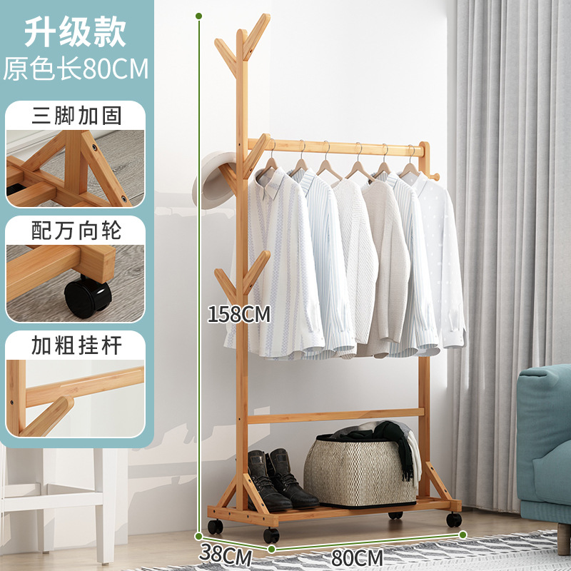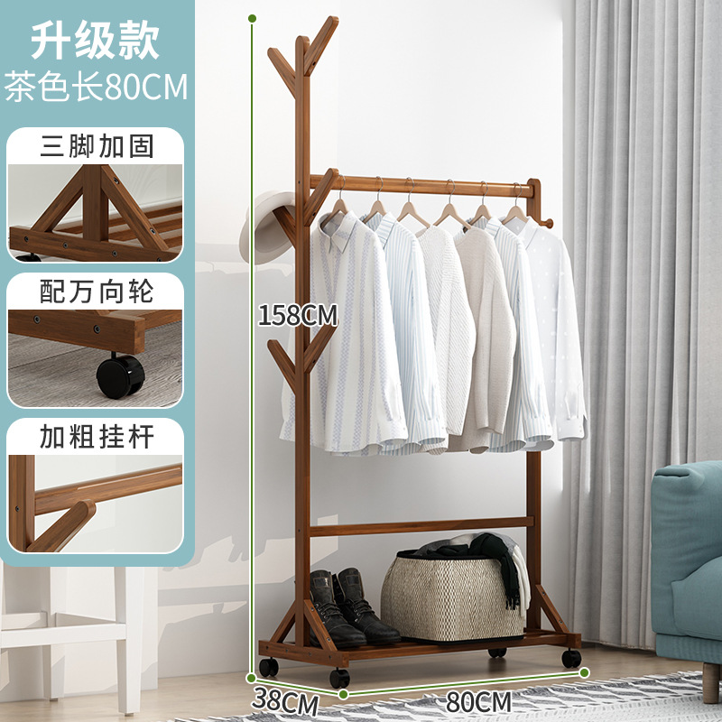 코트 랙 바닥 간단한 현대 옷걸이 가정용 단단한 나무 옷걸이 보관 랙 침실 옷 랙 모바일 랙스토어 가기