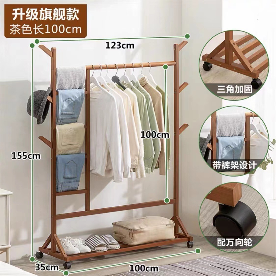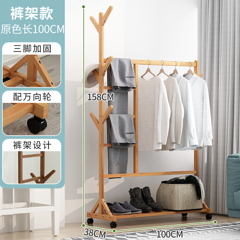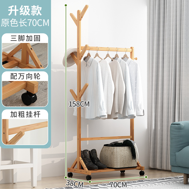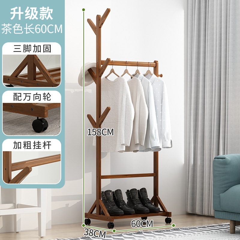 코트 랙 바닥 간단한 현대 옷걸이 가정용 단단한 나무 옷걸이 보관 랙 침실 옷 랙 모바일 랙스토어 가기