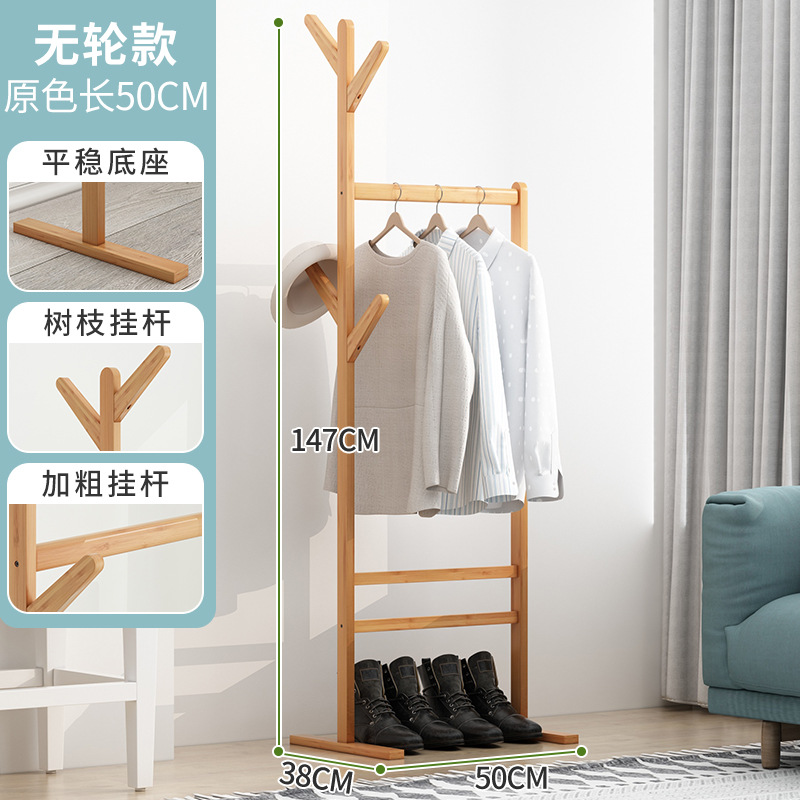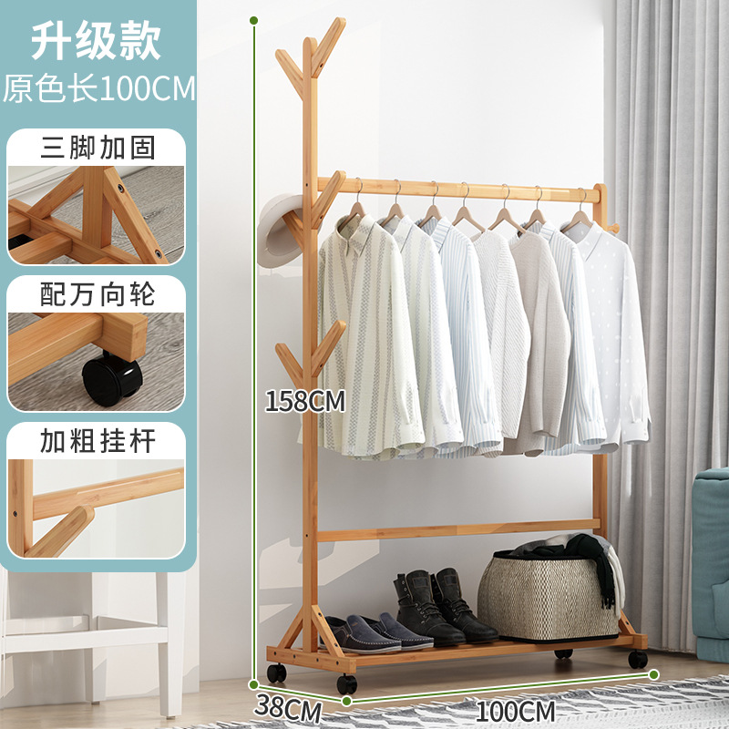 코트 랙 바닥 간단한 현대 옷걸이 가정용 단단한 나무 옷걸이 보관 랙 침실 옷 랙 모바일 랙